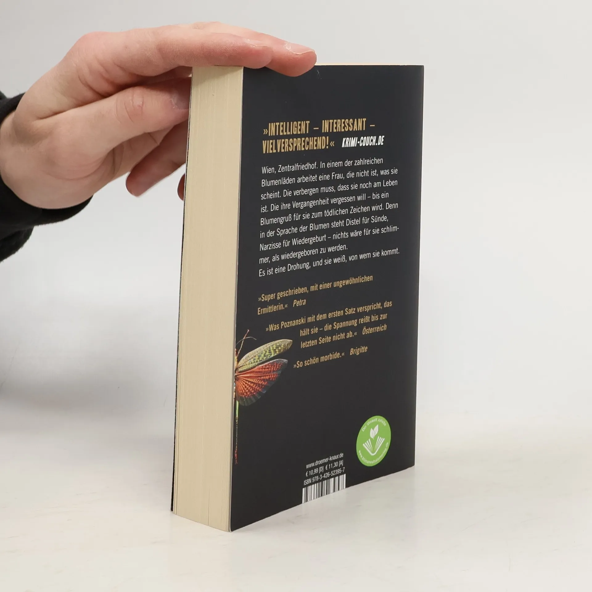 Tödliche Blumengrüße: „Vanitas – Schwarz wie Erde“ ist der Auftakt zur neuen Thriller-Reihe von Spiegel-Bestseller-Autorin Ursula Poznanski. Eine Wiener Blumenhändlerin mit dunkler Vergangenheit ermittelt gegen ein skrupelloses Verbrecher-Syndikat. Auf dem Wiener Zentralfriedhof ist die Blumenhändlerin Carolin ein so gewohnter Anblick, dass sie beinahe unsichtbar ist. Ebenso wie die Botschaften, die sie mit ihren Auftraggebern austauscht, verschlüsselt in die Sprache der Blumen - denn ihre größte Angst ist es, gefunden zu werden. Noch vor einem Jahr war Carolins Name ein anderer; damals war sie als Polizei-Spitzel einer der brutalsten Banden des organisierten Verbrechens auf der Spur. Kaum jemand weiß, dass sie ihren letzten Einsatz überlebt hat. Doch dann erhält sie einen Blumengruß, der sie zu einem neuen Fall nach München ruft - und der sie fürchten lässt, dass sie ihren eigenen Tod bald ein zweites Mal erleben könnte … Ein psychologisch dichter Thriller mit ungewöhnlicher Heldin und Gänsehaut-Garantie!