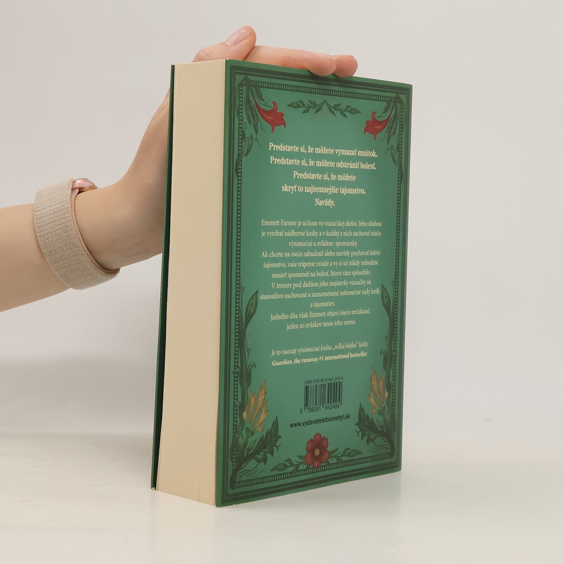 Emmett Farmer je učňom vo viazačskej dielni. Jeho úlohou je vyrábať nádherné knihy a v každej z nich uschovať niečo výnimočné a zvláštne: spomienky. Ak chcete na niečo zabudnúť alebo navždy pochovať ťaživé tajomstvo, vaše trápenie zviaže a vy si už nikdy nebudete musieť spomenúť na bolesť, ktorú vám spôsobilo. V trezore pod dielňou jeho majsterky viazačky sú starostlivo uschované a zaznamenané nekonečné rady kníh a tajomstiev. Jedného dňa však Emmett objaví niečo nečakané: jeden zo zväzkov nesie jeho meno.