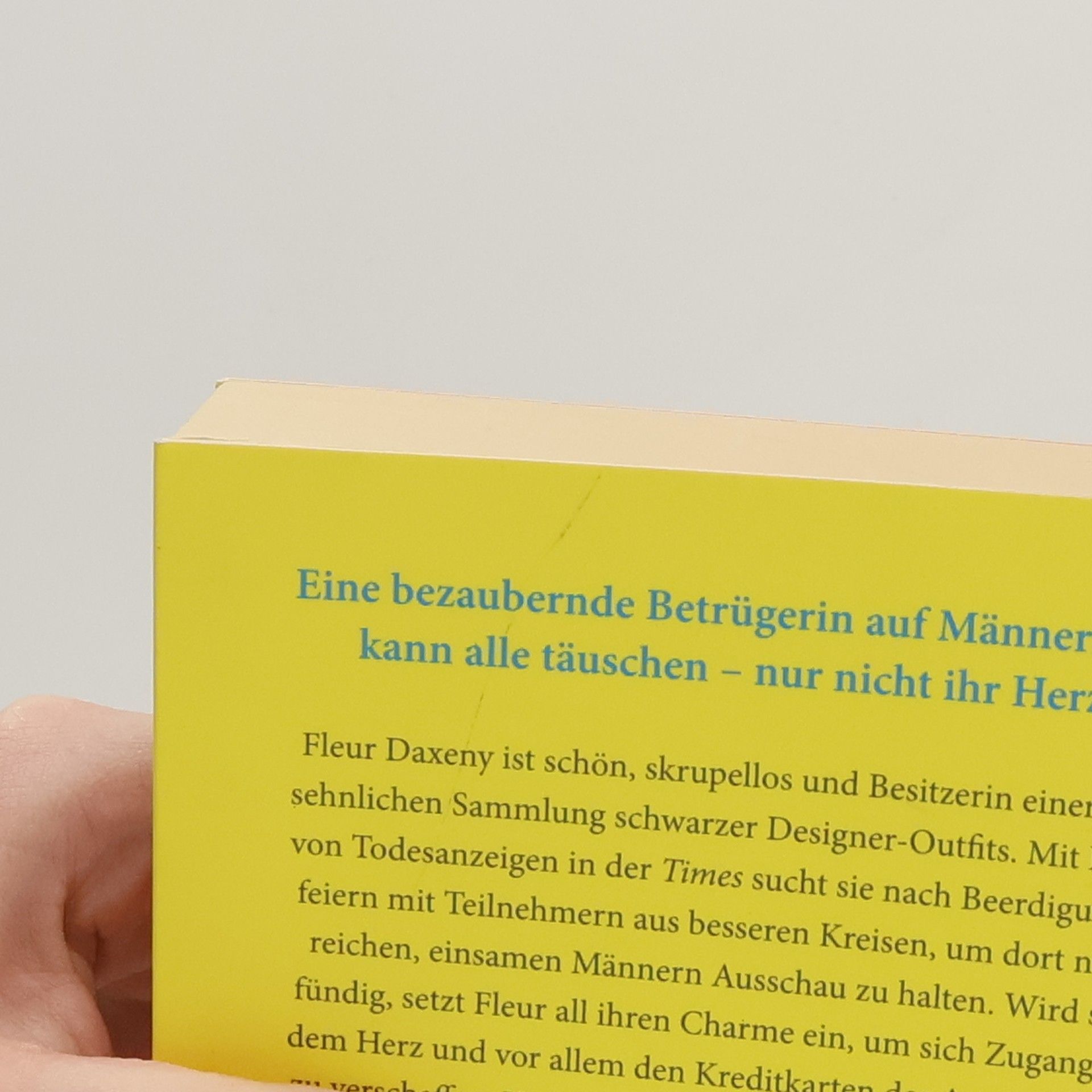 Eine bezaubernde Betrügerin auf Männerfang kann alle täuschen – nur nicht ihr Herz Fleur Daxeny ist schön, skrupellos und verfügt über eine ansehnliche Sammlung schwarzer Designer-Outfits. Mit Hilfe von Todesanzeigen in der Times sucht sie nach Beerdigungsfeiern mit Teilnehmern aus besseren Kreisen, um dort nach reichen, einsamen Männern Ausschau zu halten. Mit ihrem unwiderstehlichen Charme erschleicht sich Fleur Zugang zu deren Herz und Kreditkarten. Hat sie genug, sucht sie sich ein neues Opfer. Als Richard Favour, ein scheinbar langweiliger, aber erfolgreicher Geschäftsmann, die hinreißende Fleur bei der Beerdigung seiner Frau kennenlernt, ist er wie vom Blitz getroffen. Und Fleur bezaubert nach und nach nicht nur ihn, sondern auch seine Familie. Eigentlich läuft alles nach Plan – nur die Trennung von Richard zögert Fleur immer wieder hinaus ...