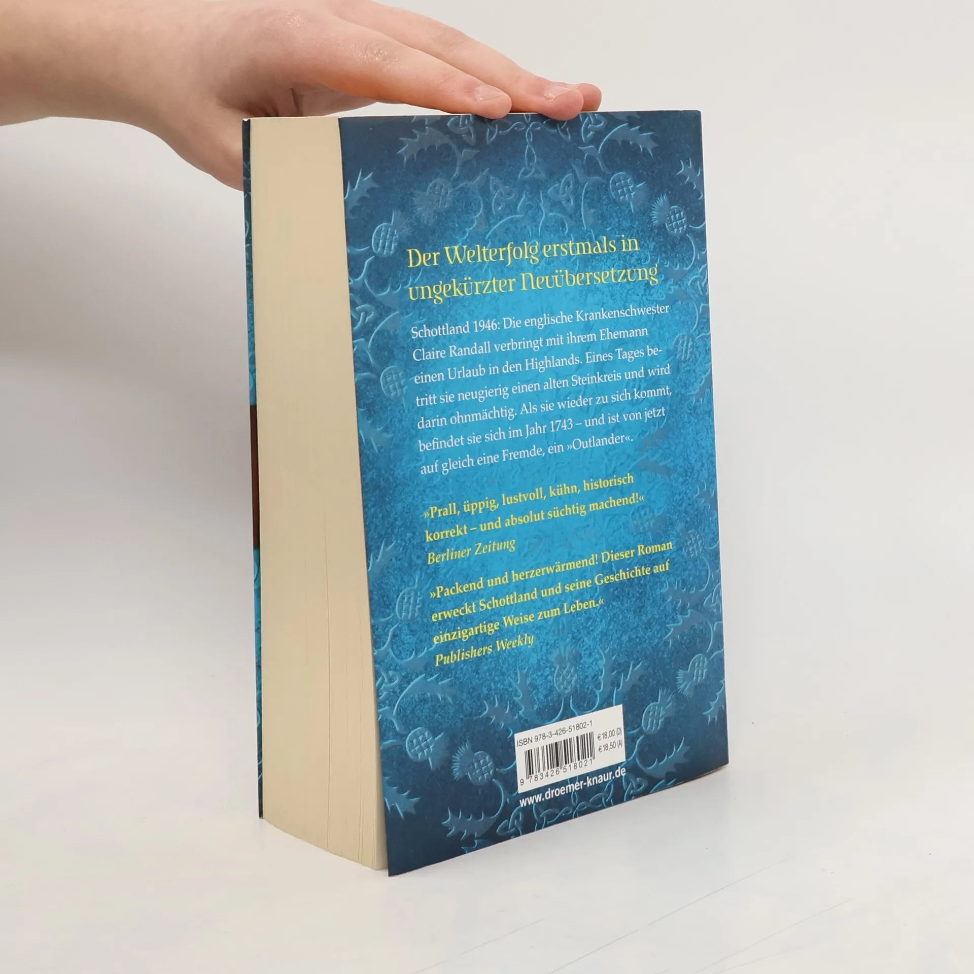 Schottland 1946: Die englische Krankenschwester Claire Randall ist in den zweiten Flitterwochen, als sie neugierig einen alten Steinkreis betritt und darin auf einmal ohnmächtig wird. Als sie wieder zu sich kommt, befindet sie sich im Jahr 1743 - und ist von jetzt auf gleich eine Fremde, ein »Outlander«.