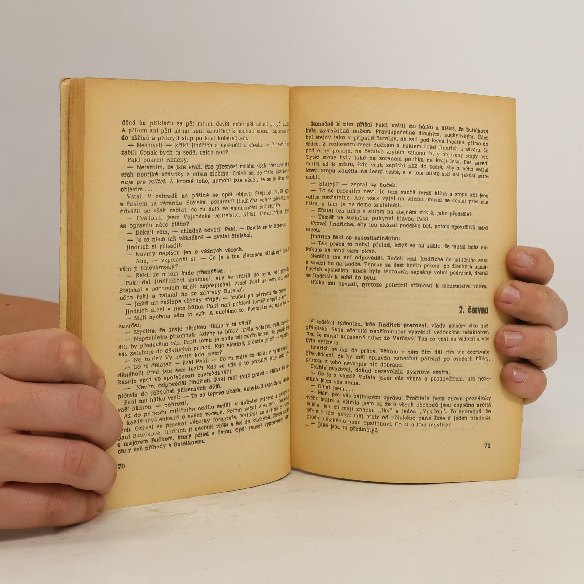 Detektivní román, kolem jehož hrdiny, novináře, se nakupí překvapivé události, zejména i série záhadných vražd. V obchodě se starožitnostmi si koupil pozoruhodnou palisandrovou hůlku, jejíž pohnuté osudy se snaží vypátrat.