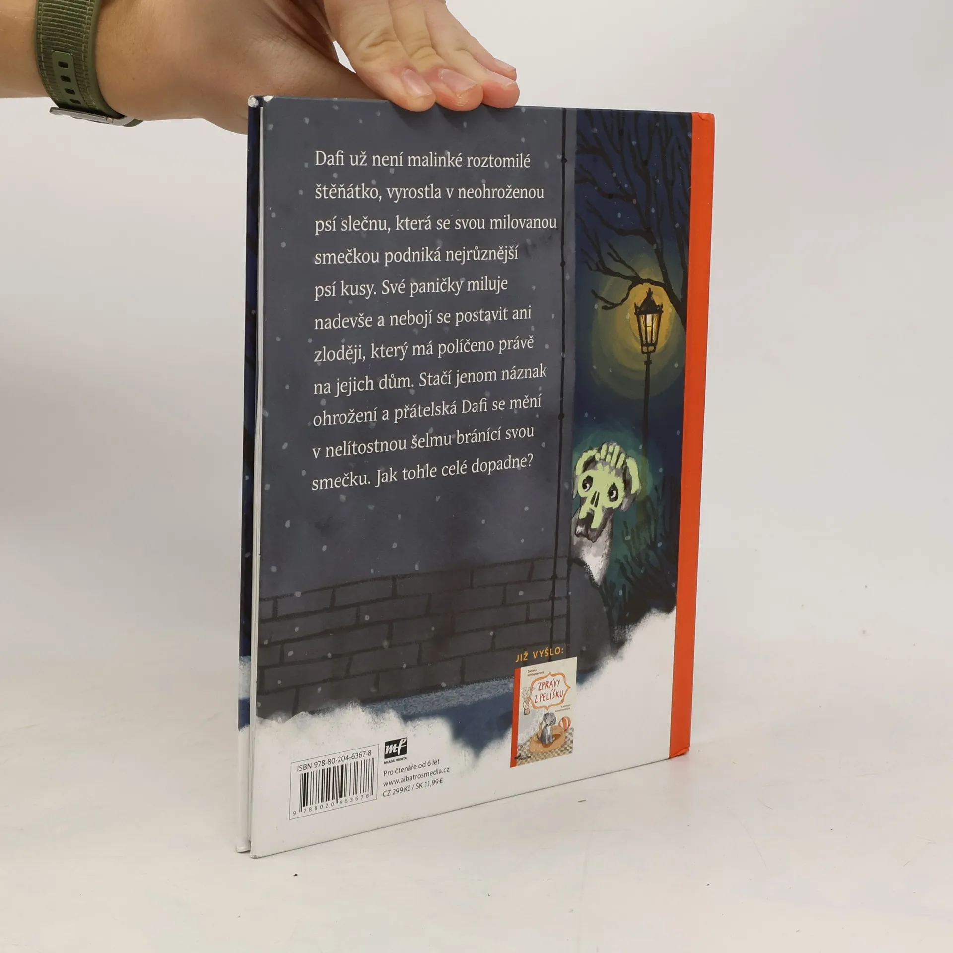 Volné pokračování oblíbené knížky Zprávy z pelíšku Dafi už není malinké roztomilé štěňátko, vyrostla v neohroženou psí slečnu, která se svou milovanou smečkou podniká nejrůznější psí kusy. Své paničky miluje nadevše a nebojí se postavit ani zloději, který má políčeno právě na jejich dům. Stačí jenom náznak ohrožení a přátelská Dafi se mění v nelítostnou šelmu bránící svou smečku. Jak tohle celé dopadne?