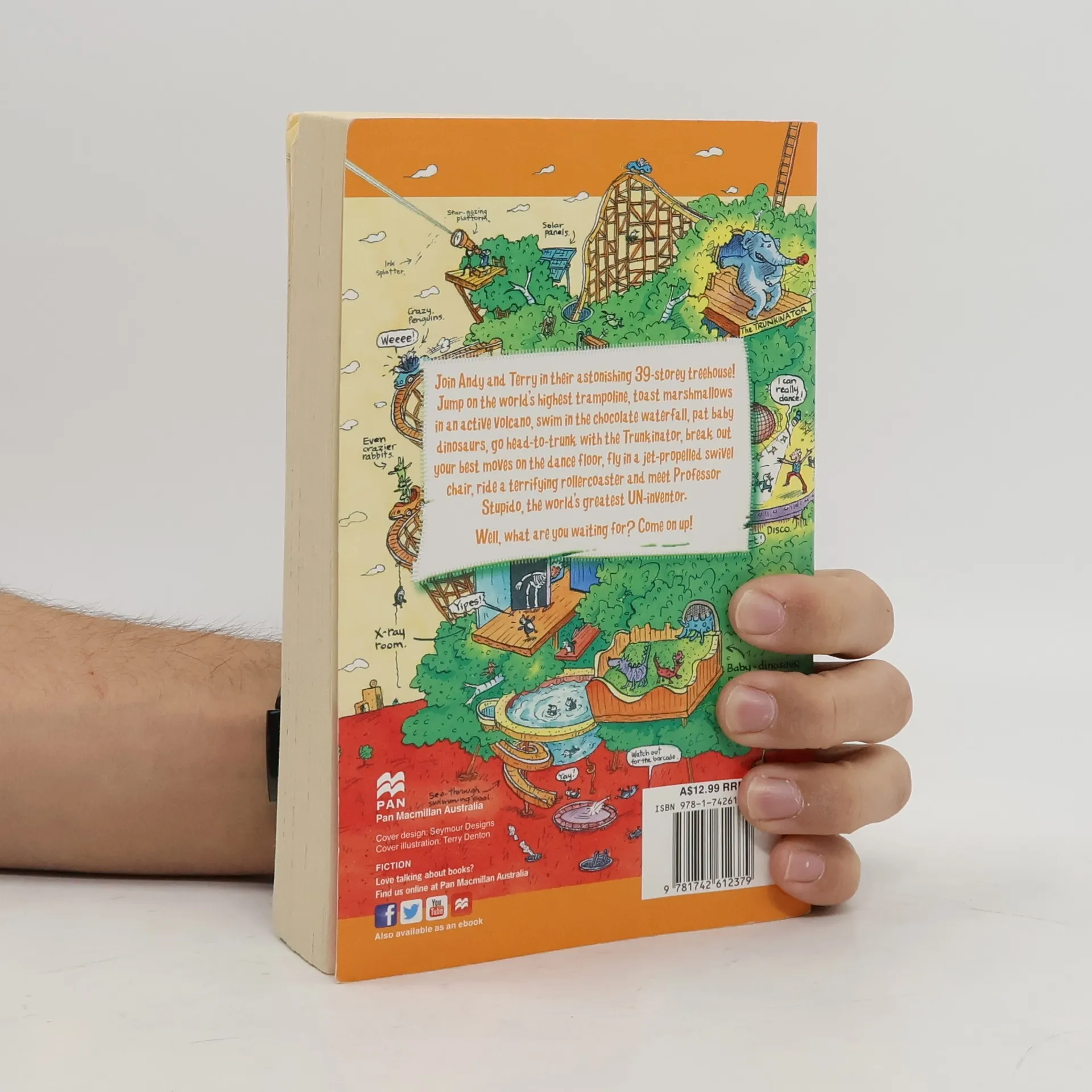 Join Andy and Terry in their astonishing 39-storey treehouse! Jump on the world's highest trampoline, toast marshmallows in an active volcano, swim in the chocolate waterfall, pat baby dinosaurs, go head-to-trunk with the Trunkinator, break out your best moves on the dance floor, fly in a jet-propelled swivel chair, ride a terrifying rollercoaster and meet Professor Stupido, the world's greatest UN-inventor. Well, what are you waiting for? Come on up!