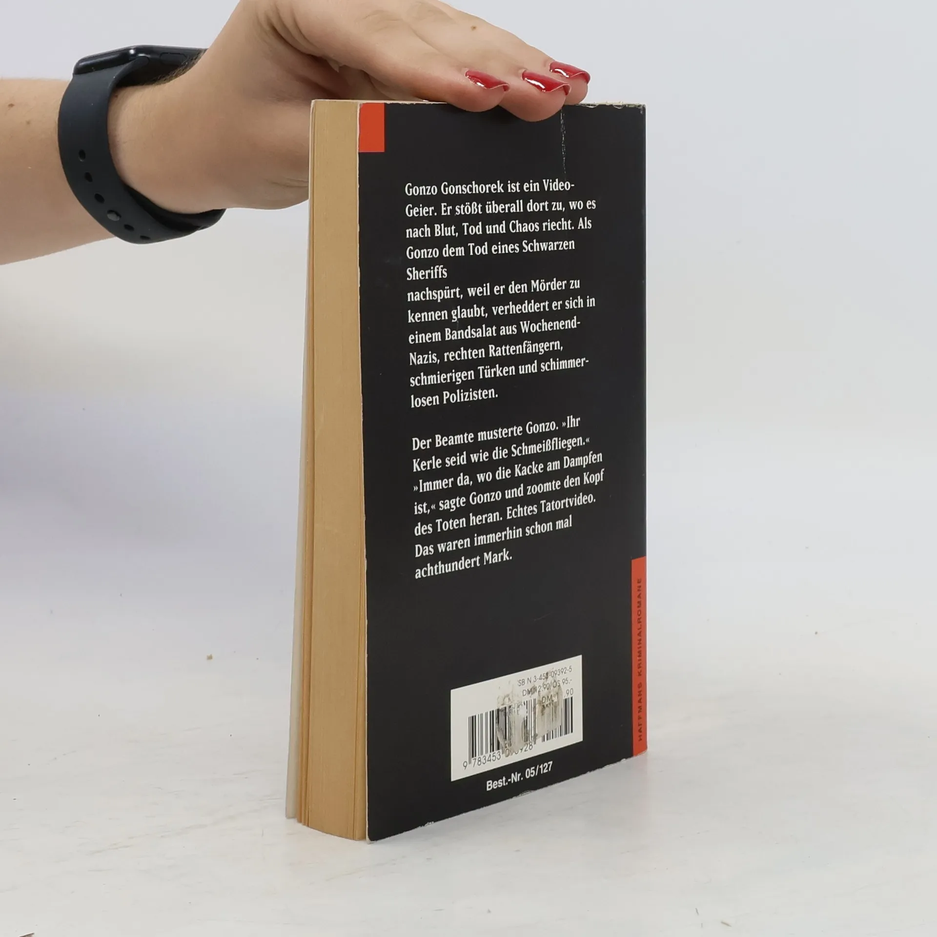 Band 1 der Glauserpreisgekrönten GonzokrimireiheGonzo Gonschorek ist ein Video-Geier. Er stößt überall dort zu, wo es nach Blut, Tod und Chaos riecht. Doch sein Aas ist nicht immer wehrlos, und als er dem Tod eines Schwarzen Sheriffs nachspürt, weil er den Mörder zu kennen glaubt, verheddert er sich in einem Bandsalat aus brutalen Wochenend-Nazis, rechten Rattenfängern, schmierigen Türken und schimmerlosen Polizisten.