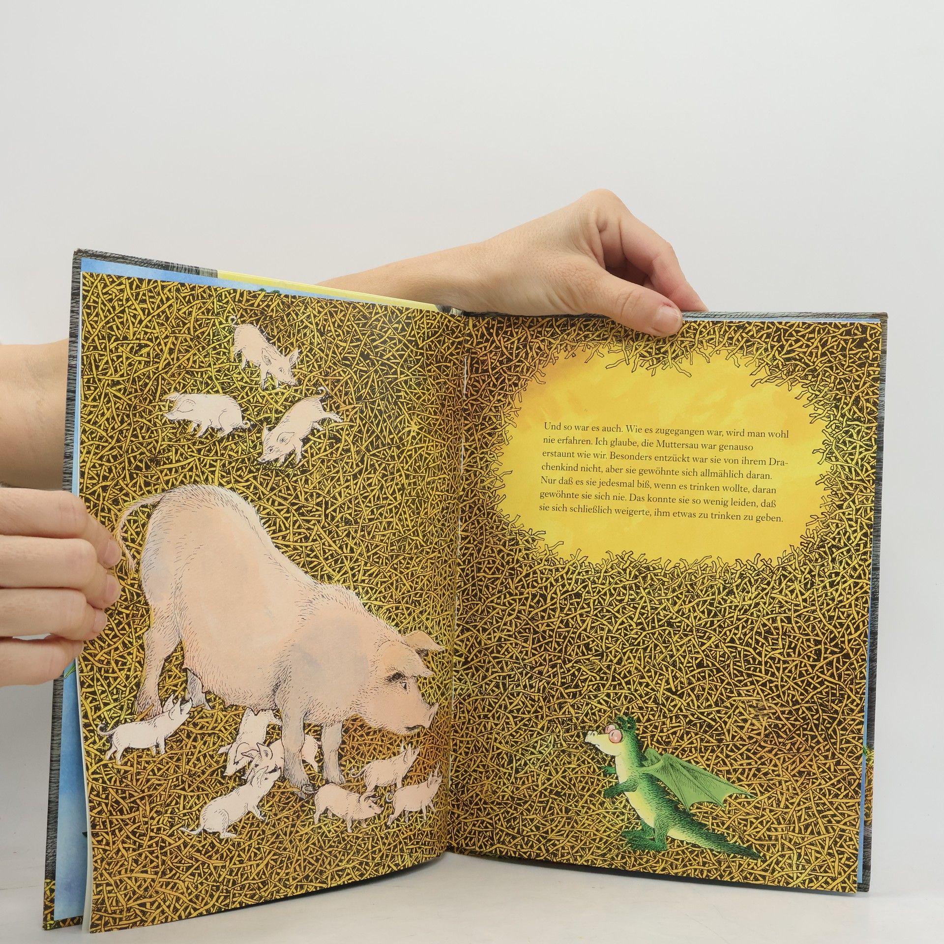 Das kleine Mädchen und sein Bruder trauen ihren Augen kaum, als sie eines Morgens in den Stall kommen: In der Ecke, neben den neugeborenen Ferkeln, steht ein kleiner grüner Drache. Keiner weiß, wie er dahin gekommen ist. Zuerst ist er noch ganz schwach, aber als die Kinder ihm immer wieder etwas zu essen bringen, wird er zunehmend munterer … Von Ilon Wikland wunderschön illustriert ist „Der Drache mit den roten Augen“ ein fantastisches, poetisches Bilderbuch-Märchen.