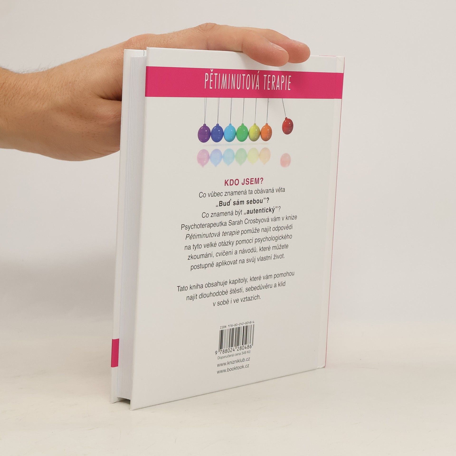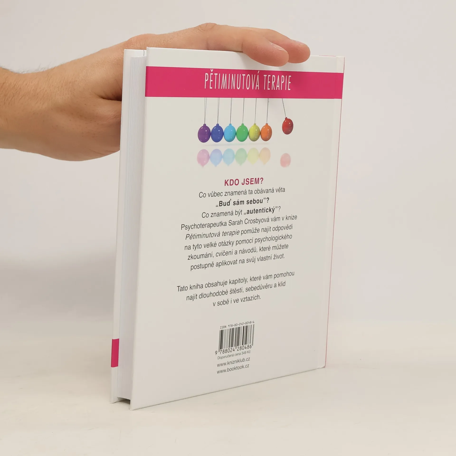 Kdo jsem? Co vůbec znamená ta obávaná věta "Buď sám sebou"? Co znamená být "autentický"? Psychoterapeutka Sarah Crosbyová vám v knize Pětiminutová terapie pomůže najít odpovědi na tyto velké otázky pomocí psychologického zkoumání, cvičení a návodů, které můžete postupně aplikovat na svůj vlastní život. Tato kniha vám pomůže najít dlouhodobé štěstí, sebedůvěru a klid v sobě i ve svých vztazích.