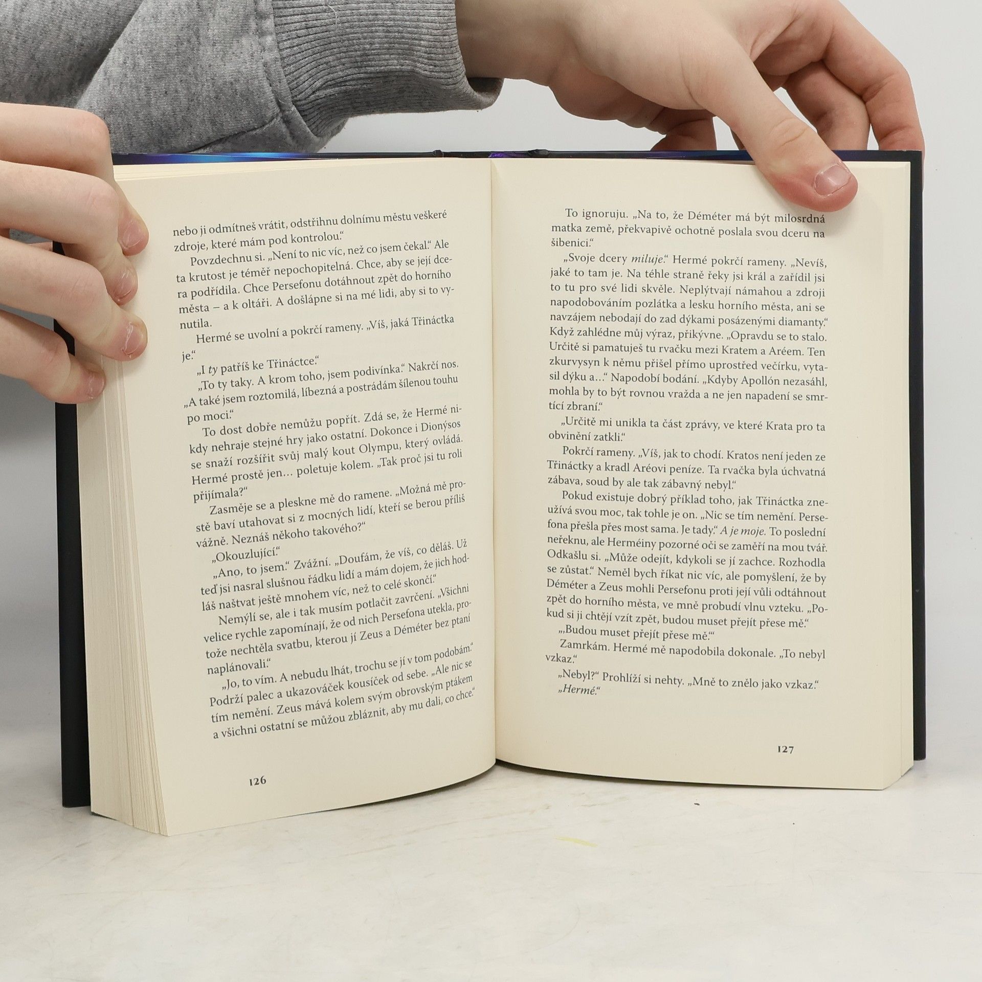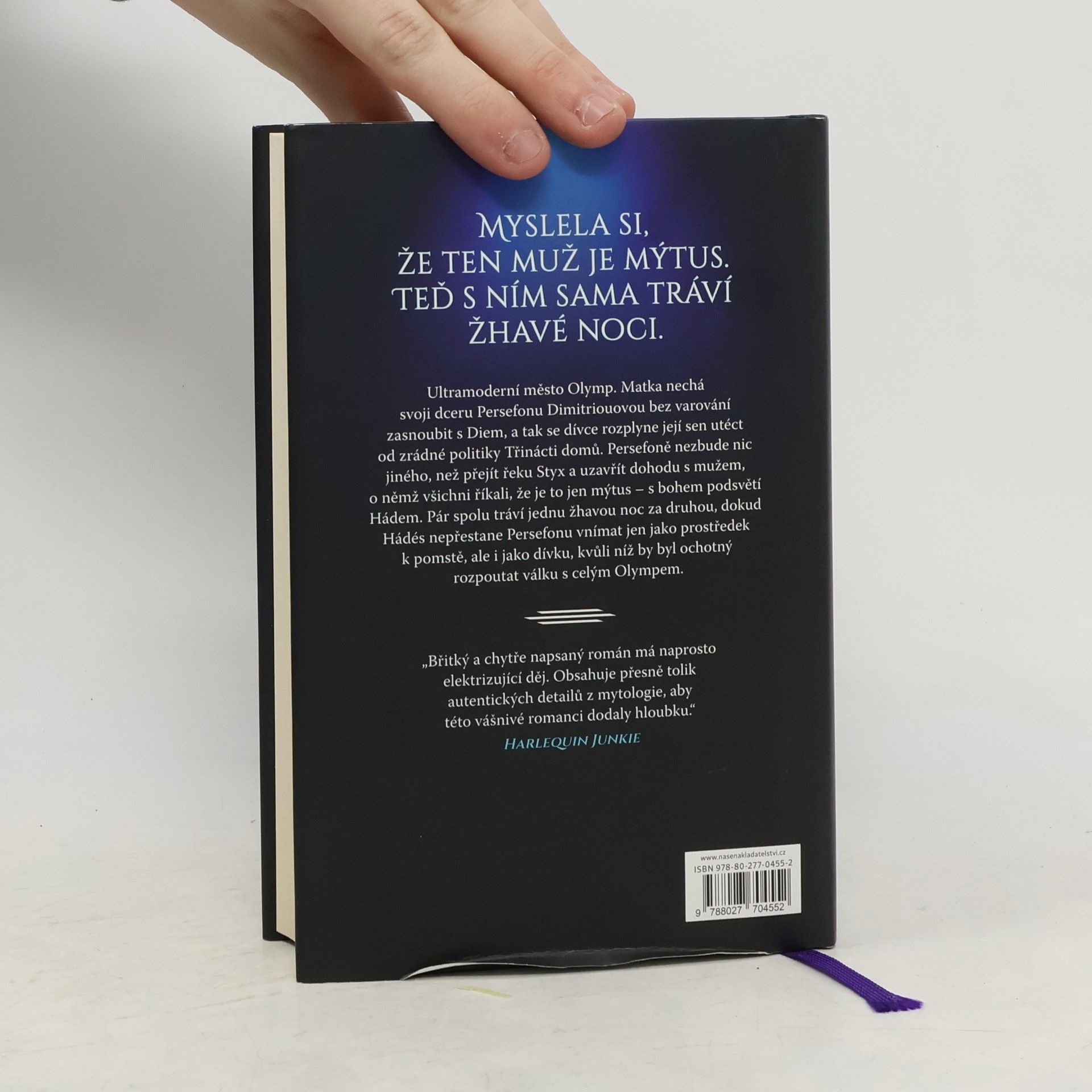 Všichni říkali, že je ten muž mýtus, ale sotva jsem přešla řeku Styx, jeho temné kouzlo mě uhranulo… a byl prostě můj. Miláček společnosti, Persefona Dimitriouová, chce uprchnout z ultramoderního města Olymp a začít znovu daleko od zrádné politiky Třinácti domů. Ale celý sen se vypaří v okamžiku, kdy ji matka bez varování nechá zasnoubit s Diem, nebezpečným vládcem temného města s nablýskanou fasádou. Persefoně nezbývá nic jiného, než prchnout do zakázaného dolního města a uzavřít ďáblovu dohodu s mužem, kterého považovala za legendu… s mužem, který ji dovede do světa, o jehož existenci neměla ani zdání. Hádés strávil celý svůj život ve stínech a vůbec netouží vystoupit na světlo. Když však zjistí, že mu Persefona může nabídnout střípek pomsty, po níž celá léta prahne, pomůže jí – za jistou cenu. Ale každá bezdechá noc, kterou stráví propletený s Persefonou, v něm probouzí tak silnou touhu, že je ochotný rozpoutat válku s celým Olympem, jen aby si ji udržel… Moderní převyprávění mýtu o Hádovi a Persefoně, které je stejně tak hříšné, jako sladké.