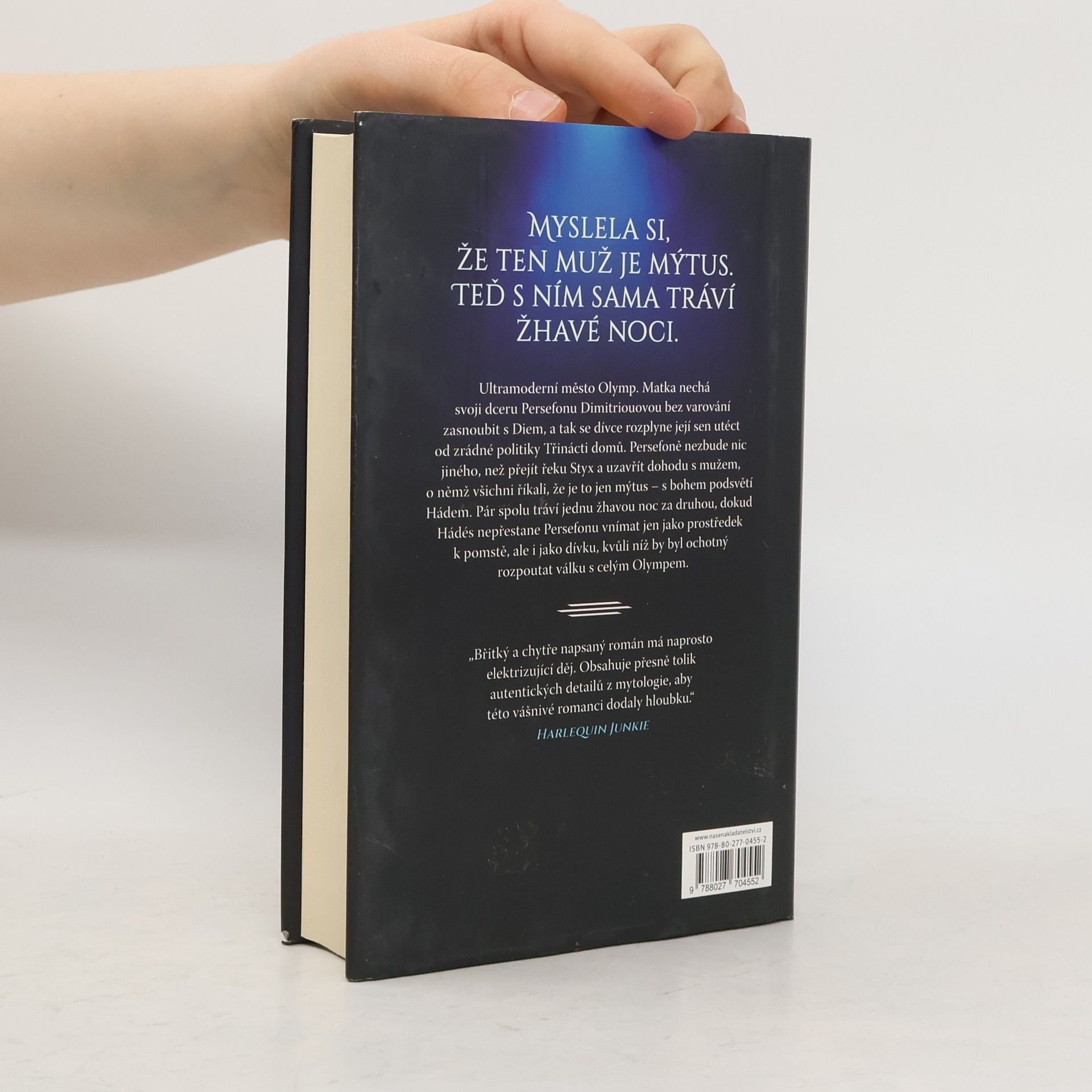 Všichni říkali, že je ten muž mýtus, ale sotva jsem přešla řeku Styx, jeho temné kouzlo mě uhranulo… a byl prostě můj. Miláček společnosti, Persefona Dimitriouová, chce uprchnout z ultramoderního města Olymp a začít znovu daleko od zrádné politiky Třinácti domů. Ale celý sen se vypaří v okamžiku, kdy ji matka bez varování nechá zasnoubit s Diem, nebezpečným vládcem temného města s nablýskanou fasádou. Persefoně nezbývá nic jiného, než prchnout do zakázaného dolního města a uzavřít ďáblovu dohodu s mužem, kterého považovala za legendu… s mužem, který ji dovede do světa, o jehož existenci neměla ani zdání. Hádés strávil celý svůj život ve stínech a vůbec netouží vystoupit na světlo. Když však zjistí, že mu Persefona může nabídnout střípek pomsty, po níž celá léta prahne, pomůže jí – za jistou cenu. Ale každá bezdechá noc, kterou stráví propletený s Persefonou, v něm probouzí tak silnou touhu, že je ochotný rozpoutat válku s celým Olympem, jen aby si ji udržel… Moderní převyprávění mýtu o Hádovi a Persefoně, které je stejně tak hříšné, jako sladké.
