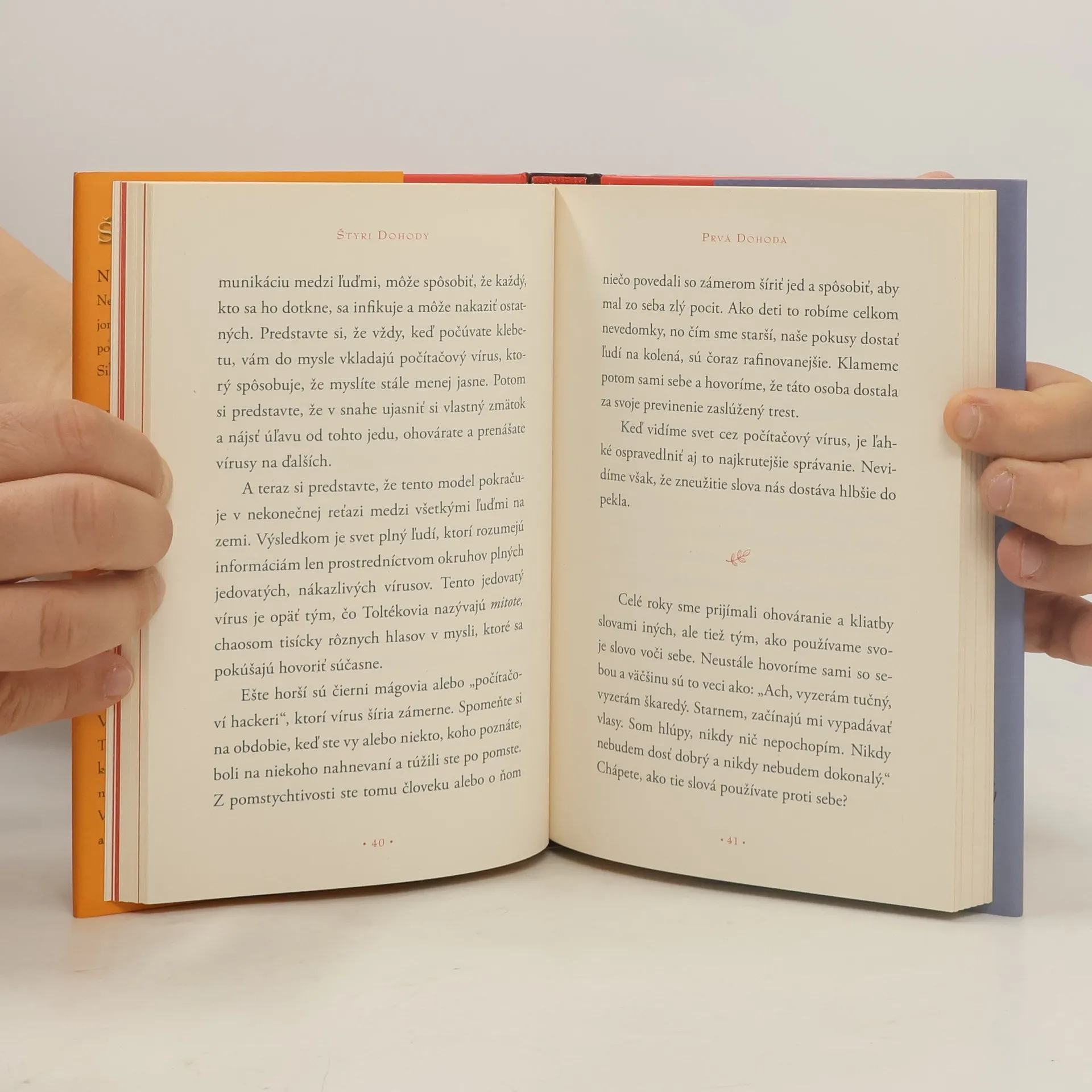 V Štyroch dohodách odhaľuje don Miguel Ruiz zdroj obmedzujúcich názorov, ktoré nás pripravujú o radosť a vedú k zbytočnému utrpeniu. Štyti dohody, založené na starej toltéckej múdrosti, ponúkajú silný kód chovania, ktorý dokáže rýchle promeniť náš život na nové prežívanie slobody, skutočného šťastia a lásky.