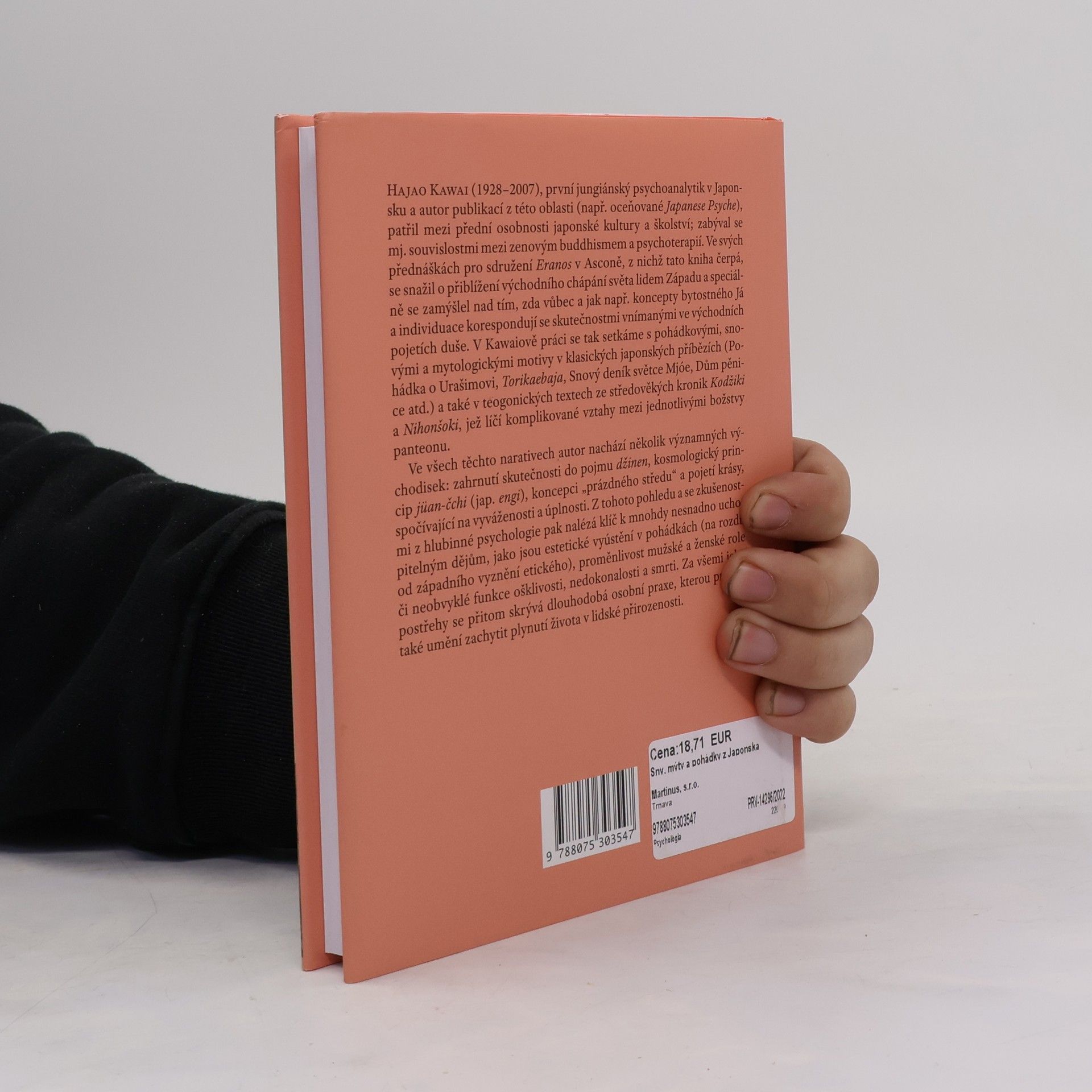 Hajao Kawai (1928–2007), první jungiánský psychoanalytik v Japonsku, byl významnou osobností japonské kultury a školství, známý svými publikacemi, jako je oceňované Japanese Psyche. Věnoval se vztahům mezi zenovým buddhismem a psychoterapií. V přednáškách pro sdružení Eranos v Asconě, z nichž tato kniha čerpá, se snažil přiblížit východní chápání světa Západu, zamýšlejíc nad koncepty bytostného Já a individuace v kontextu východních pojetí duše. Kawaiova práce zahrnuje pohádkové, snové a mytologické motivy z klasických japonských příběhů a teogonických textů ze středověkých kronik, které popisují složité vztahy mezi božstvy. Autor identifikuje klíčové prvky, jako zahrnutí skutečnosti do pojmu džinen, kosmologický princip jüan-čchi, koncept „prázdného středu“ a pojetí krásy založené na vyváženosti. Z pohledu hlubinné psychologie nachází klíč k obtížně uchopitelným tématům, jako jsou estetické vyústění v pohádkách, proměnlivost genderových rolí a funkce ošklivosti a smrti. Jeho postřehy vycházejí z dlouhodobé osobní praxe a japonského umění zachycovat plynutí života v lidské přirozenosti.