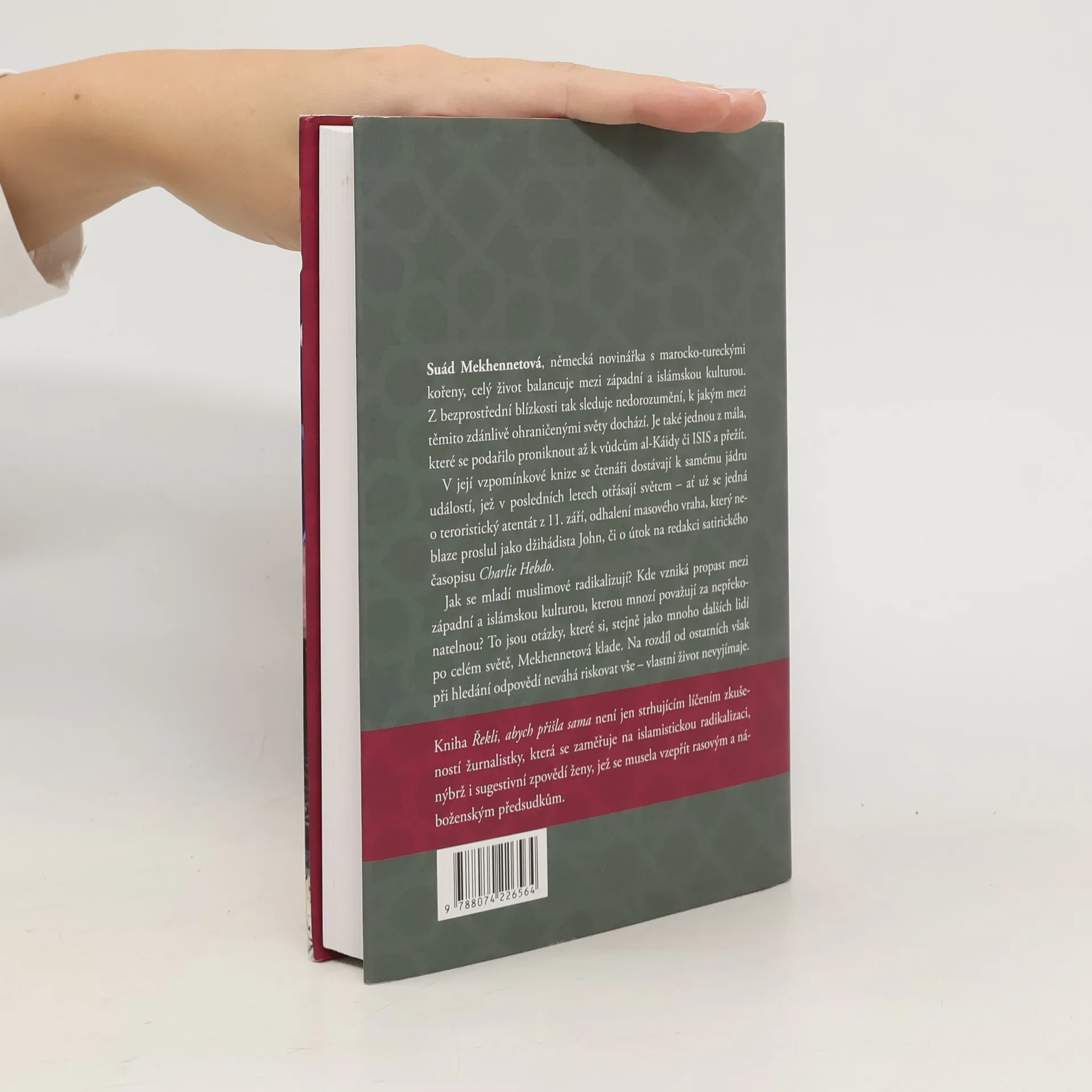 Suád Mekhennetová, německá novinářka s marocko-tureckými kořeny, celý život balancuje mezi západní a islámskou kulturou. Z bezprostřední blízkosti tak sleduje nedorozumění, k jakým mezi těmito zdánlivě ohraničenými světy dochází. Je také jednou z mála, které se podařilo proniknout až k vůdcům al-Káidy či ISIS a přežít. V její vzpomínkové knize se čtenáři dostávají k samému jádru událostí, jež v posledních letech otřásají světem.