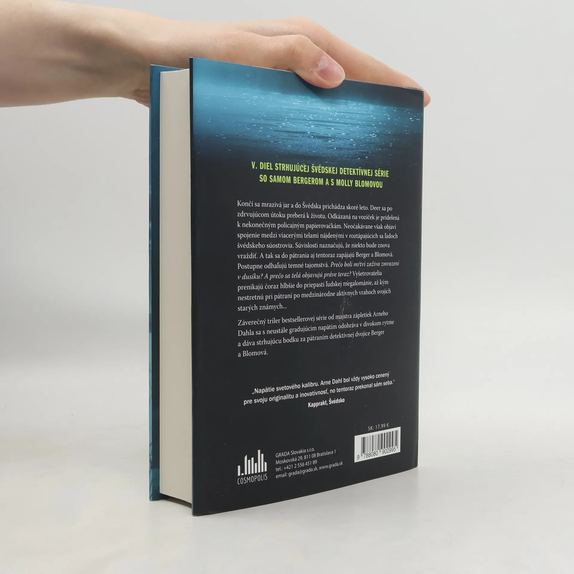 Končí sa mrazivá jar a do Švédska prichádza skoré leto. Deer sa po zdrvujúcom útoku preberá k životu. Odkázaná na vozíček je pridelená k nekonečným policajným papierovačkám. Neočakávane však objaví spojenie medzi viacerými telami nájdenými v roztápajúcich sa ľadoch švédskeho súostrovia. Súvislosti naznačujú, že niekto bude znova vraždiť. A tak sa do pátrania aj tentoraz zapájajú Berger a Blomová. Postupne odhaľujú temné tajomstvá. Prečo boli mŕtvi zaživa zmrazení v dusíku? A prečo sa telá objavujú práve teraz? Vyšetrovatelia prenikajú čoraz hlbšie do priepasti ľudskej megalománie, až kým nestretnú pri pátraní po medzinárodne aktívnych vrahoch svojich starých známych... Záverečný triler bestsellerovej série od majstra zápletiek Arneho Dahla sa s neustále gradujúcim napätím odohráva v divokom rytme a dáva strhujúcu bodku za pátraním detektívnej dvojice Berger a Blomová.