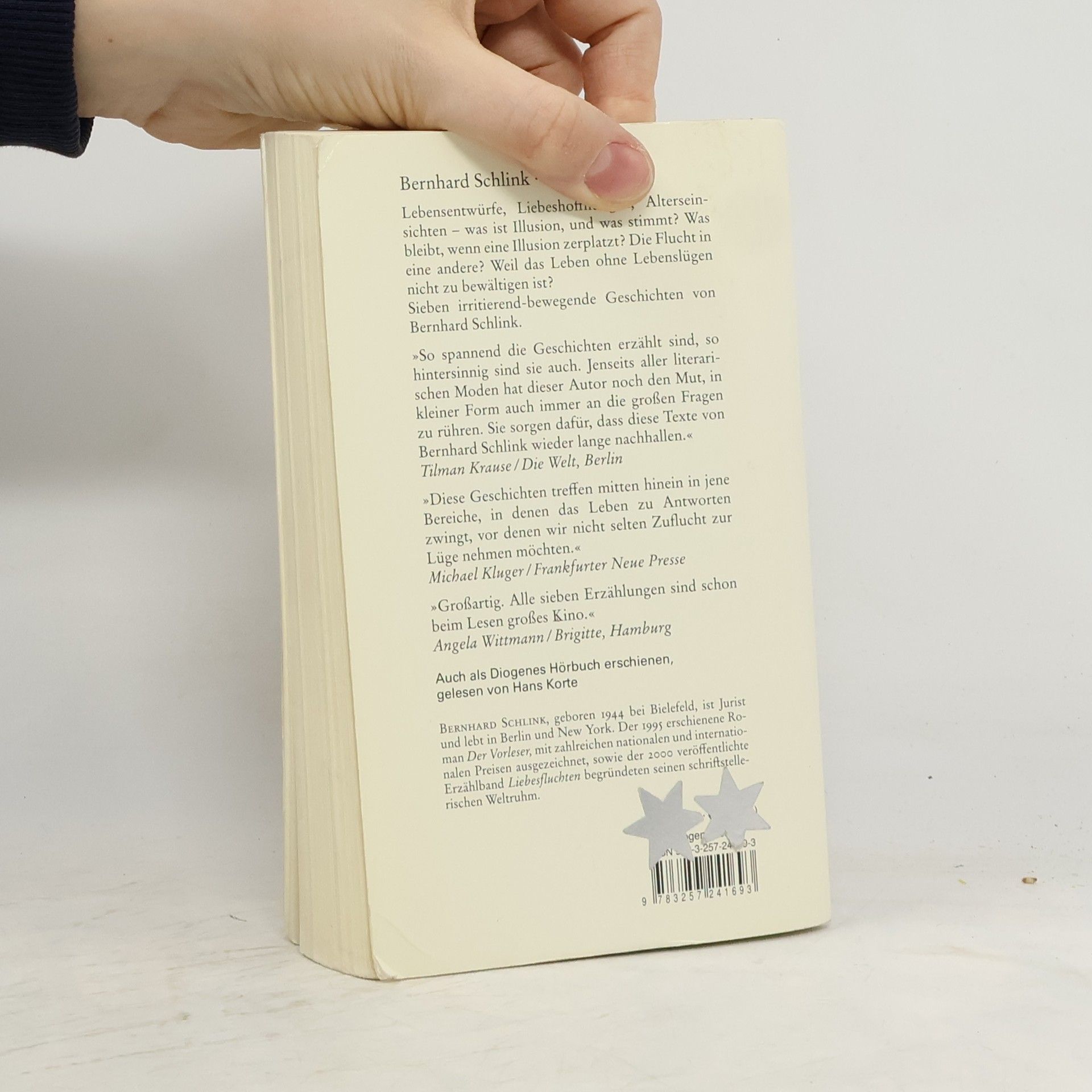 Lebensentwürfe, Liebeshoffnungen, Alterseinsichten was ist Illusion, und was stimmt? Was bleibt, wenn eine Illusion zerplatzt? Die Flucht in eine andere? Weil das Leben ohne Lebenslügen nicht zu bewältigen ist? Sieben irritierend-bewegende Geschichten von Bernhard Schlink.