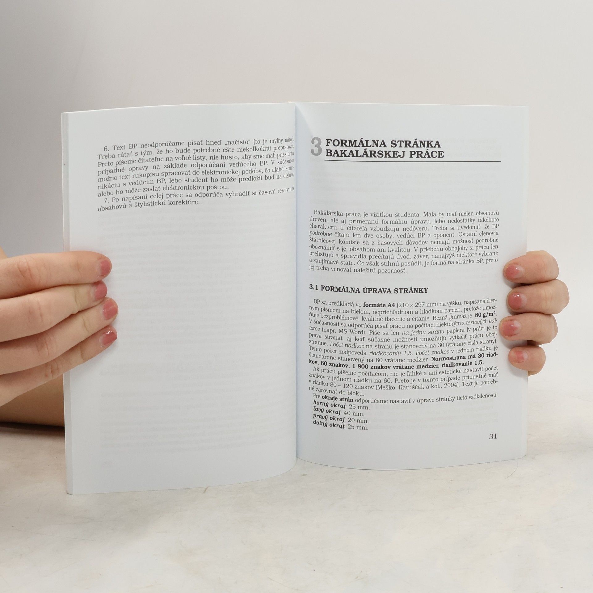 Publikácia metodika písania bakalárskej práce poskytuje cenné informácie o obsahovej štruktúre bakalárskej práce, jej formálnej stránke, o príprave na obhajobu aj o jej priebehu, o spôsoboch citovania a zostavovania bibliografických odkazov platných noriem.