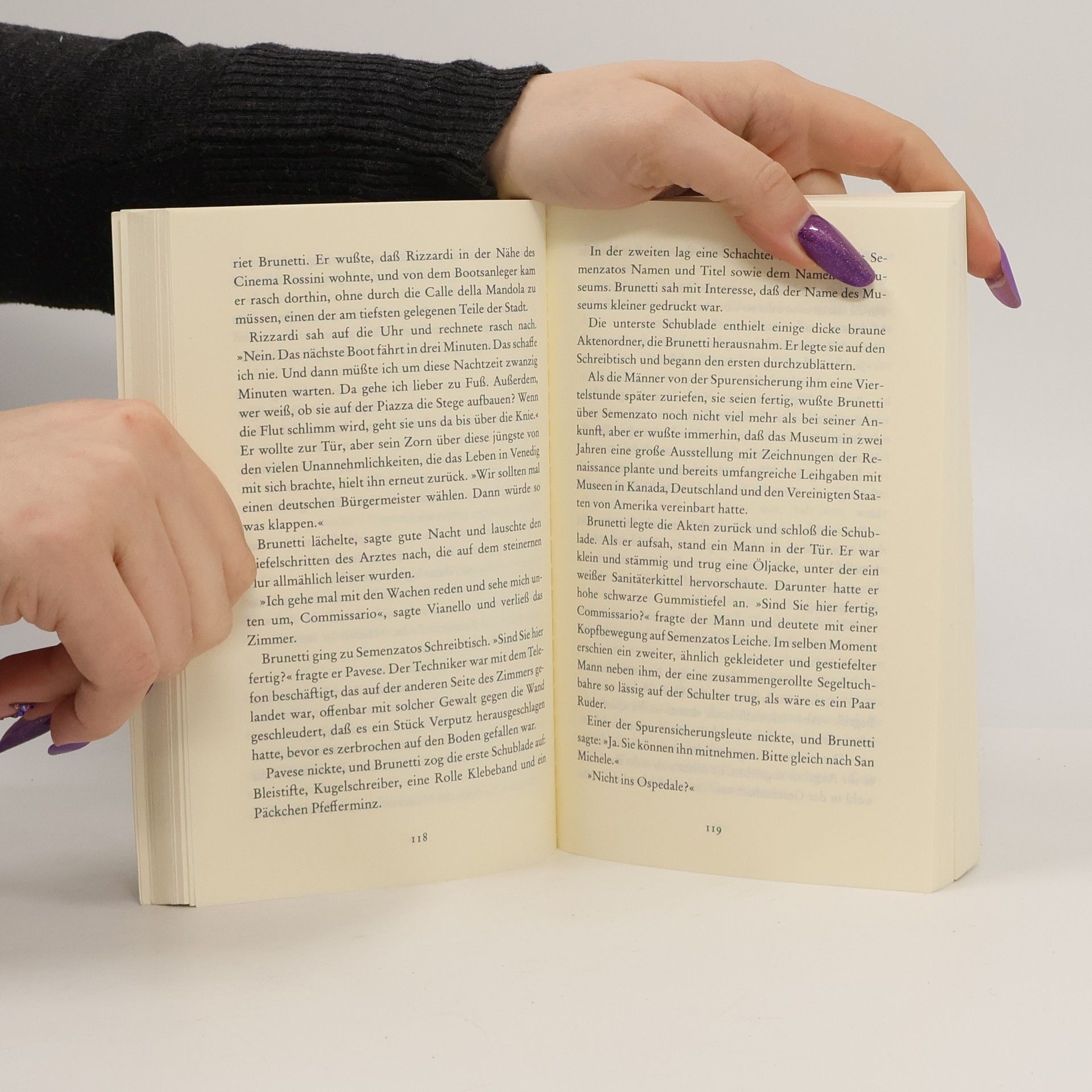 Als die amerikanische Archäologin Brett Lynch im Flur ihrer Wohnung n Venedig von zwei Männern zusammengeschlagen wird, regt sich außer Brunetti kaum jemand auf. Schließlich ist Lynch nicht nur Ausländerin, sondern wie es heißt, auch noch Frauen mehr als Männern zugetan und mit einer Operndiva liiert. Als zwei Tage später jedoch der renommierte Museumsdirektor Dottor Semenzato ermordet aufgefunden wird, ist ganz Venedig entsetzt. Brunetti will beide Fälle mit der ihm eigenen Hartnäckigkeit aufklären - zumal die Betroffene Brett Lynch und ihre Freundin Flavia Petrelli ihm nahestehen seit jenem Abend in der Oper, der für den Dirigenten Wellauer zu seinem VENEZIANISCHEN FINALE wurde. Brunetti geht der Sache nach - und nicht nur die Spannung steigt, sondern auch der Wasserpegel.