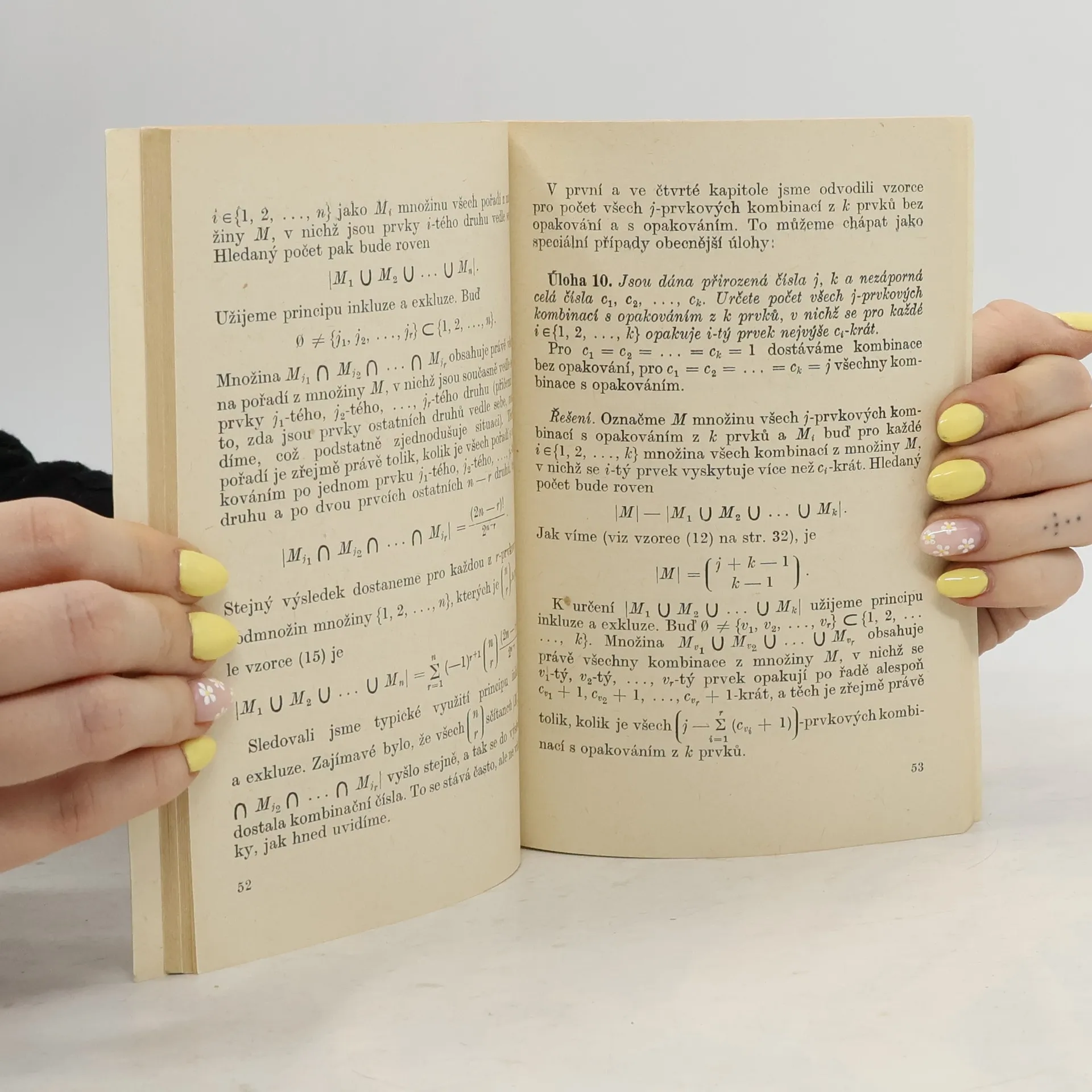 První kapitoly obsahují látku ze středoškolské kombinatoriky - pořadí, variace a kombinace, faktoriály a kombinační čísla, binomickou větu, variace a kombinace bez opakování i s opakováním. V dalších kapitolách probírá autor principy inkluze a exkluze, řešení některých důležitých úloh, které mají svůj význam pro teorii pravděpodobnosti a statistickou fyziku, a uvádí vybrané kombinátorské úlohy olympijské povahy.