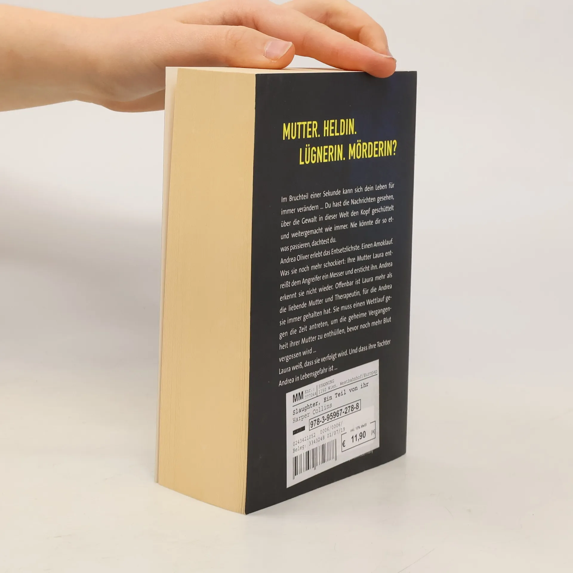 Mutter. Heldin. Lügnerin. Mörderin? Der SPIEGEL-Bestseller jetzt auf Netflix. Ein einziger Moment kann alles verändern: Andrea Oliver überlebt einen Amoklauf – doch ihre Mutter Laura greift den Täter an und tötet ihn. Plötzlich muss Andrea erkennen: Ihre Mutter ist nicht die Frau, für die sie sie immer gehalten hat. Wer ist Laura wirklich? Ein Wettlauf beginnt, um ihre geheime Vergangenheit aufzudecken, bevor noch mehr Blut fließt … Laura weiß: Sie wird gejagt. Und ihre Tochter ist in Gefahr. Pressestimmen: „Bringt Sie um den Schlaf – ein Muss für Slaughter-Fans.“ (ok!) „Slaughter schildert Verbrechen in brutaler Klarheit, zeigt aber auch die Zerrissenheit ihrer Figuren.“ (dpa) „Packend bis zur letzten Seite.“ (Zeit für mich) „Spannend, psychologisch fein, provokant.“ (Hörzu, vol.at) „Nichts ist, wie es scheint – menschliche Abgründe garantiert.“ (Mainhattan Kurier) „Eine der besten Thriller-Autorinnen der USA.“ (IN)