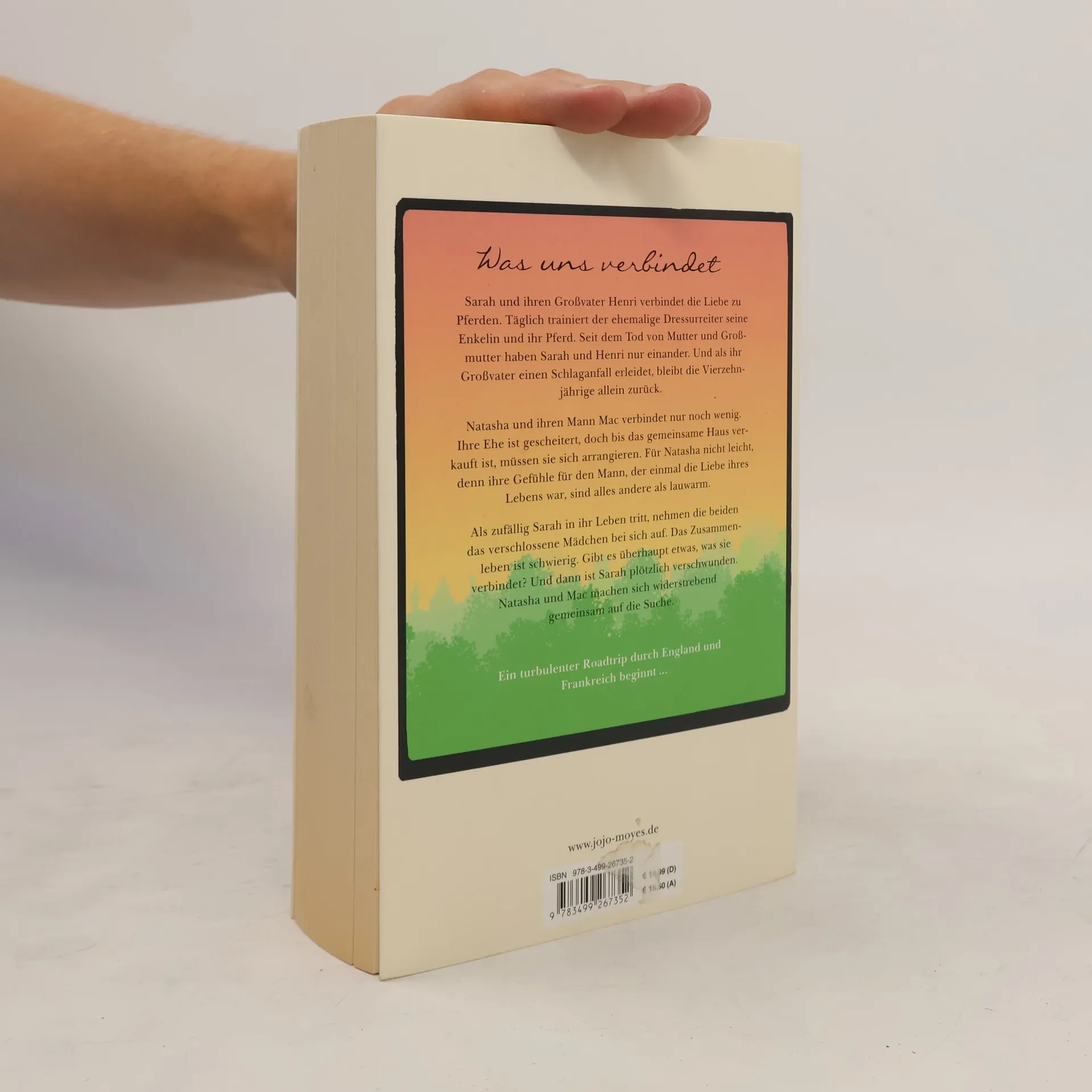 Von der Autorin des weltweiten Nr. 1-Bestsellers «Ein ganzes halbes Jahr » ein neuer bewegender Roman über die Suche nach dem, was uns verbindet, und dem Ort, an dem wir uns zuhause fühlen. Sarah und ihr Großvater teilen die Liebe zu Pferden. Einst war Henri ein gefeierter Dressurreiter, bis das Schicksal seine Karriere beendete. Täglich trainiert er die Vierzehnjährige und ihr Pferd. Seit dem Tod von Mutter und Großmutter haben die beiden nur einander. Und als Henri einen Schlaganfall erleidet, bleibt seine Enkelin allein zurück. Natasha und ihren Mann Mac verbindet nur noch wenig. Ihre Ehe ist gescheitert, doch bis das gemeinsame Haus verkauft ist, müssen sie sich arrangieren. Für Natasha nicht leicht, denn ihre Gefühle für den Mann, der einmal die Liebe ihres Lebens war, sind alles andere als lauwarm. Als zufällig Sarah in ihr Leben tritt, nehmen die beiden das verschlossene Mädchen bei sich auf. Das Zusammenleben ist schwierig. Gibt es überhaupt etwas, was die drei miteinander verbindet? Plötzlich ist Sarah verschwunden. Und Natasha und Mac machen sich widerstrebend gemeinsam auf die Suche. Ein turbulenter Roadtrip durch England und Frankreich beginnt ... Familie, das sind die Menschen, bei denen wir uns zuhause fühlen. Auf ihre ganz eigene bewegende und gleichzeitig unterhaltsame Art schreibt Jojo Moyes über Familie: die, in die wir geboren werden, und die, die wir uns suchen.