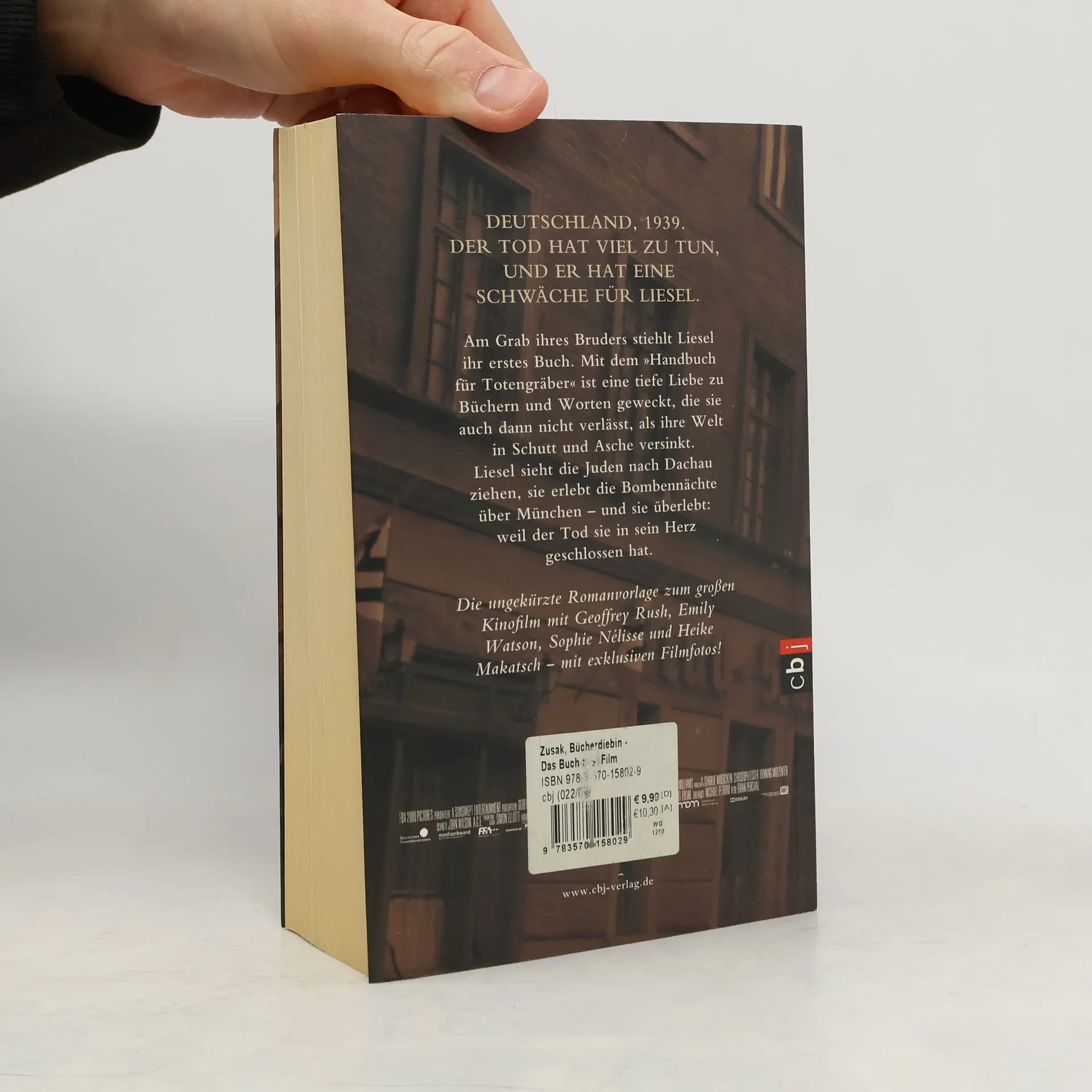 Die Filmausgabe des Weltbestsellers exklusiv bei cbj Am Grab ihres Bruders stiehlt Liesel ihr erstes Buch. Mit dem »Handbuch für Totengräber« ist eine tiefe Liebe zu Büchern und Worten geweckt, die sie auch dann nicht verlässt, als ihre Welt in Schutt und Asche versinkt. Liesel sieht die Juden nach Dachau ziehen, sie erlebt die Bombennächte über München – und sie überlebt: weil der Tod sie in sein Herz geschlossen hat. Die cbj Sonderausgabe zum Film enthält zahlreiche Filmfotos in Farbe.