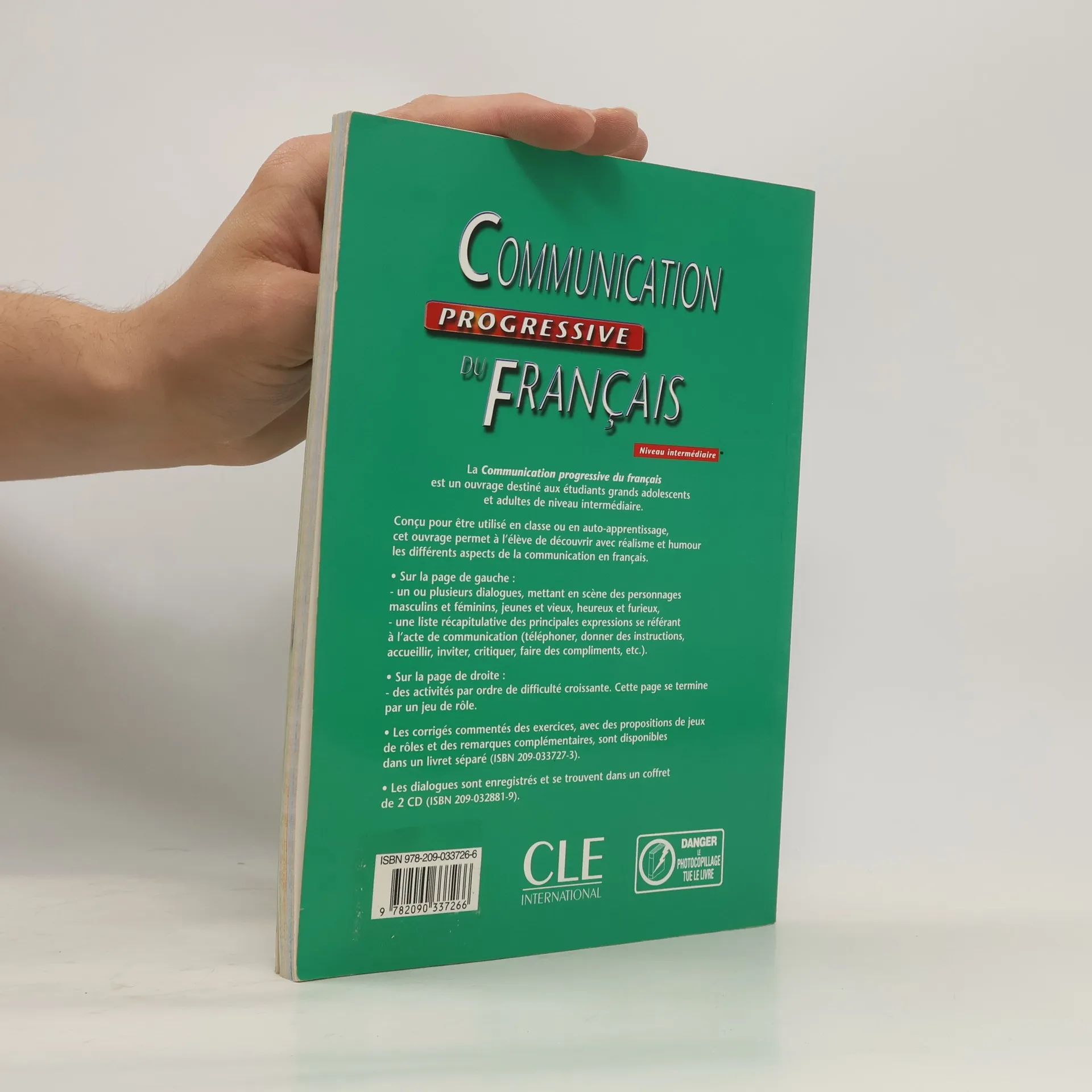 Ouvrage unique en son genre, la Communication progressive est un véritable outil pour un enseignement du français modulable, souple et moderne, en classe ou en auto-apprentissage. Organisation :40 savoir-faire communicatifs développés à travers des dialogues pétillants et des activités variées;Chaque chapitre met en scène un acte de parole grâce à des situations de communication caractéristiques de la vie quotidienne;Le niveau de langue correspond à notre vie moderne avec un registre oral courant excluant l'argot;Chaque chapitre est autonome, afin de travailler en toute liberté ; néanmoins, ils sont regroupés en 5 grands thèmes : faire les courses, donner et obtenir des informations, les interactions plus complexes de la conversation, les contacts sociaux, la discussion et le débat;Chaque chapitre est ponctué par un bilan.L'ouvrage, tout comme le reste de la collection, propose une série de cours, chacun organisé sur une double page :à gauche plusieurs dialogues vivants et concrets qu'on retrouvera sur support audio.On y trouvera également une liste récapitulative des principales expressions des remarques lexicales, culturelles et pratiques;à droite, des exercices pédagogiques de trois sortes : des activités de compréhension des dialogues, des activités de réemploi et un jeu de rôle ou une activité créative.On retrouvera les corrigés commentés dans un livret. Les dialogues sont enregistrés sur 2 CD audio vendus à part.