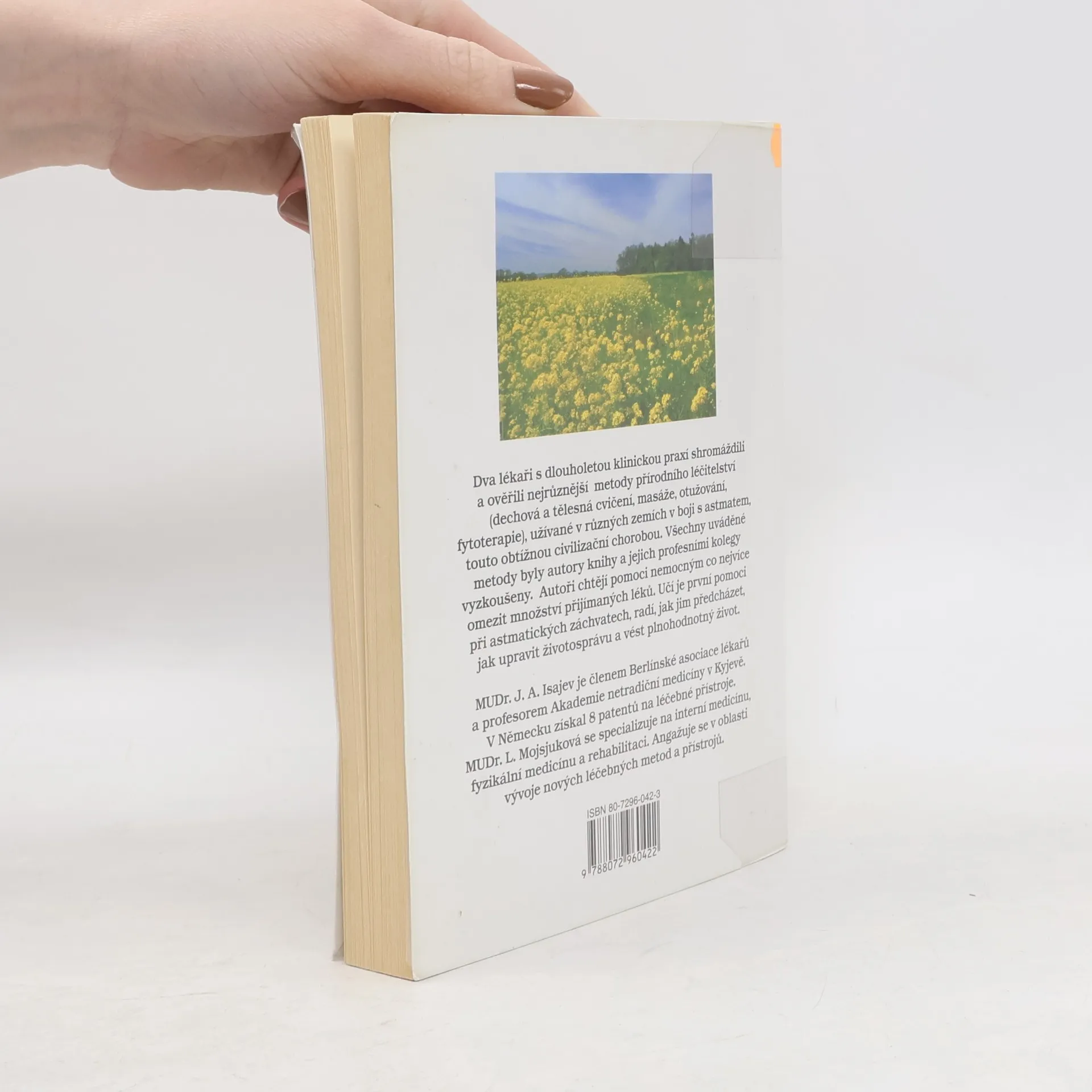 Nefarmakologické metody léčení. Nemocných postižených touto obtížnou civilizační chorobou stále přibývá. Dva lékaři s dlouhodobou klinickou praxí shromáždili a ověřili nejrůznější osvědčené metody přírodního léčitelství (dechová a tělesná cvičení, masáže, otužování, fytoterapie a další) s cílem co nejvíce omezit množství přijímaných léků. Názorně s pomocí obrázků učí pacienty první pomoci při astmatických záchvatech, radí jak jim předcházet, upravit životosprávu a vést plnohodnotný život.
