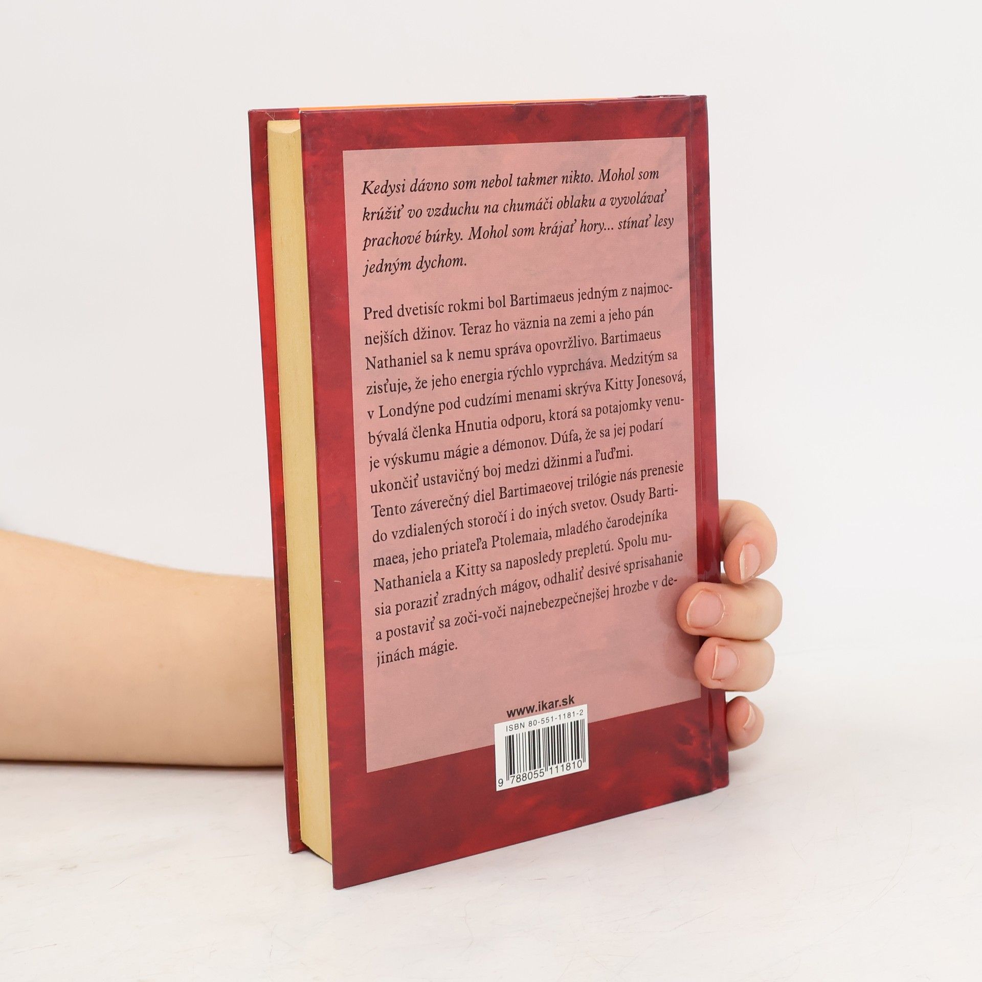 Pred dvetisíc rokmi bol Bartimaeus jedným z najmocnejších džinov. Teraz ho väznia na zemi a jeho pán Nathaniel sa k nemu správa opovržlivo. Bartimaeus zisťuje, že jeho energia rýchlo vyprcháva. Medzitým sa v Londýne pod cudzími menami skrýva Kitty Jonesová, bývalá členka Hnutia odporu, ktorá sa potajomky venuje výskumu mágie a démonov. Dúfa, že sa jej podarí ukončiť ustavičný boj medzi džinmi a ľuďmi. Tento záverečný diel Bartimaeovej trilógie nás prenesie do vzdialených storočí i do iných svetov. Osudy Bartimaea, jeho priateľa Ptolemaia, mladého čarodejníka Nathaniela a Kitty sa naposledy prepletú. Spolu musia poraziť zradných mágov, odhaliť desivé sprisahanie a postaviť sa zoči-voči najnebezpečnejšej hrozbe v dejinách mágie.