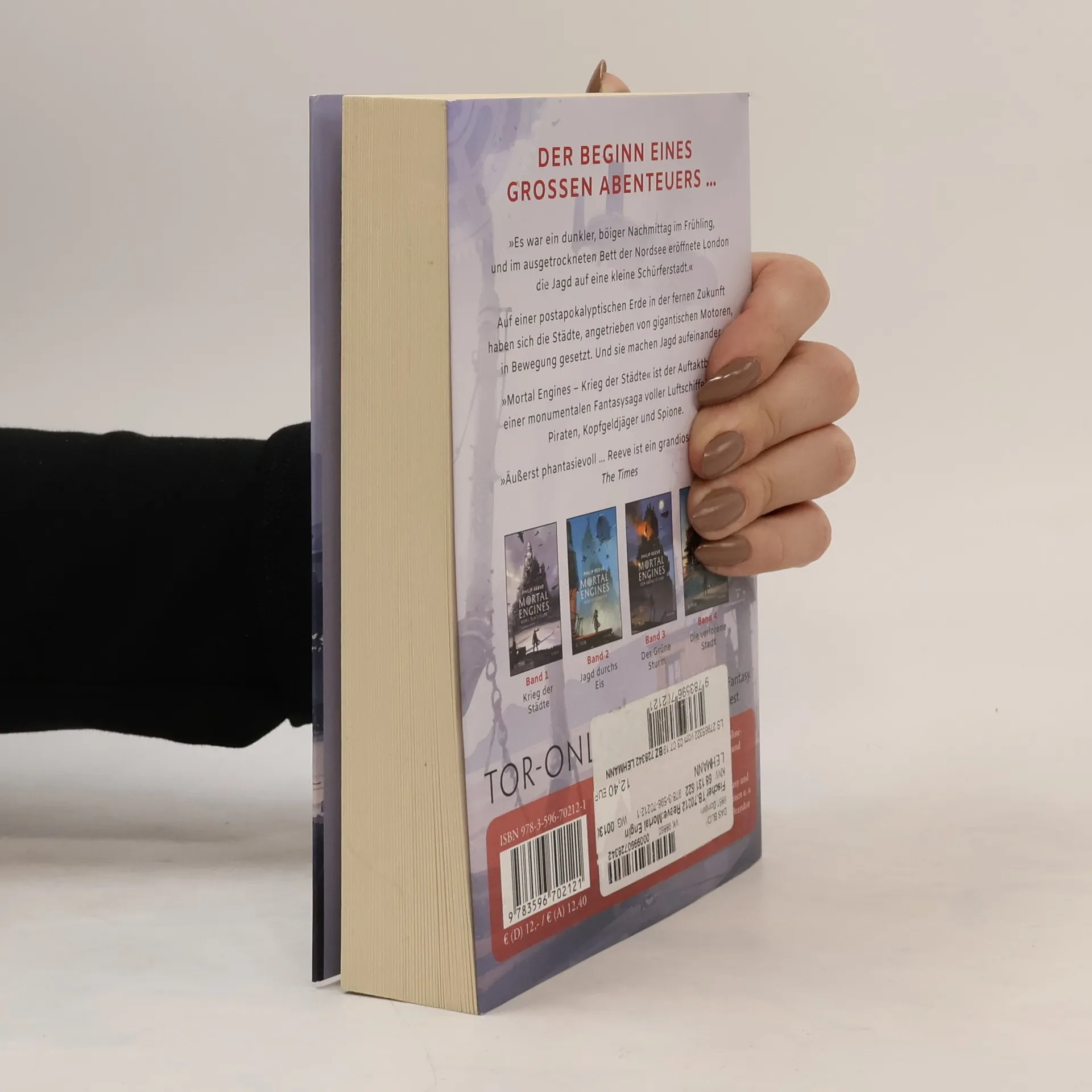„Mortal Engines - Krieg der Städte“ ist der Auftaktband zu Philip Reeves monumentaler Fantasyserie voller Luftschiffe und Piraten, Kopfgeldjäger und Aeronauten – und fahrender Städte. Niemand hatte mit einem Attentat gerechnet. Als das Mädchen mit dem Tuch vor dem Gesicht ein Messer zückt, um den Obersten Historiker Londons, Thaddeus Valentine, umzubringen, kann ihm der junge Gehilfe Tom in letzter Sekunde das Leben retten. Er verfolgt das Mädchen, das jedoch durch einen Entsorgungsschacht in die Außenlande entkommt. Dass Valentine, statt seinem Retter zu danken, den Jungen gleich mit hinausstößt, konnte ebenfalls beim besten Willen keiner ahnen … Damit beginnt Toms abenteuerliche Odyssee durch die Großen Jagdgründe zurück nach London. Begleitet wird er von der unbeirrbaren Hester Shaw, die fest entschlossen ist, den Mord an ihren Eltern zu rächen. Sie treffen auf Sklavenhändler und Piraten, werden von einem halbmenschlichen Kopfgeldjäger verfolgt und von einer Aeronautin namens Anna Fang gerettet. Und all das, während Valentine plant, mittels einer Superwaffe aus dem Sechzig-Minuten-Krieg die Feinde der fahrenden Städte zu vernichten … Für Leser von Philip Pullman oder J. R. R. Tolkien und Fans von Peter Jackson. „Mortal Engines - Krieg der Städte“ ist der erste Band des „Mortal Engines“-Quartetts Band 2: Mortal Engines – Jagd durchs Eis Band 3: Mortal Engines – Der Grüne Sturm Band 4: Mortal Engines – Die verlorene Stadt