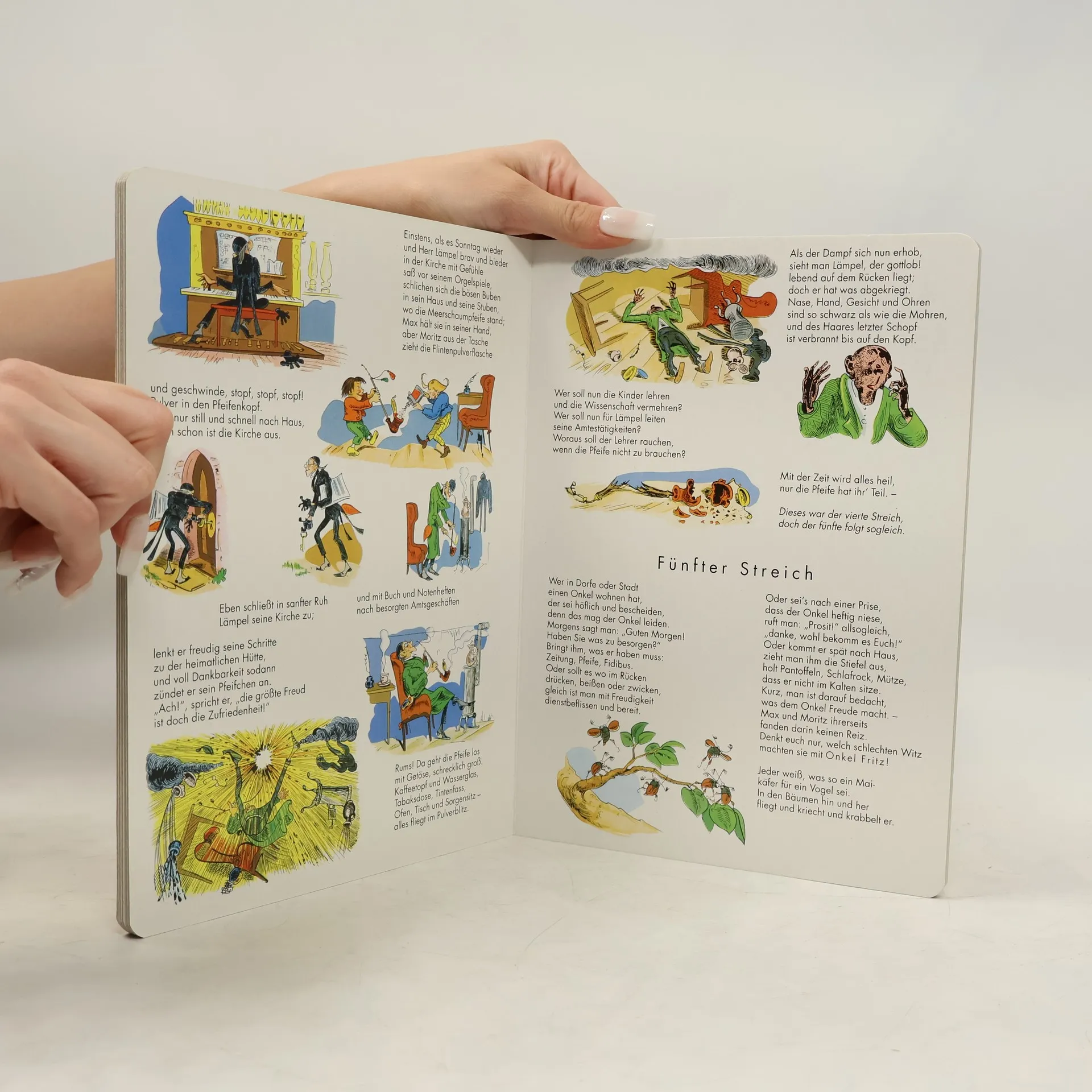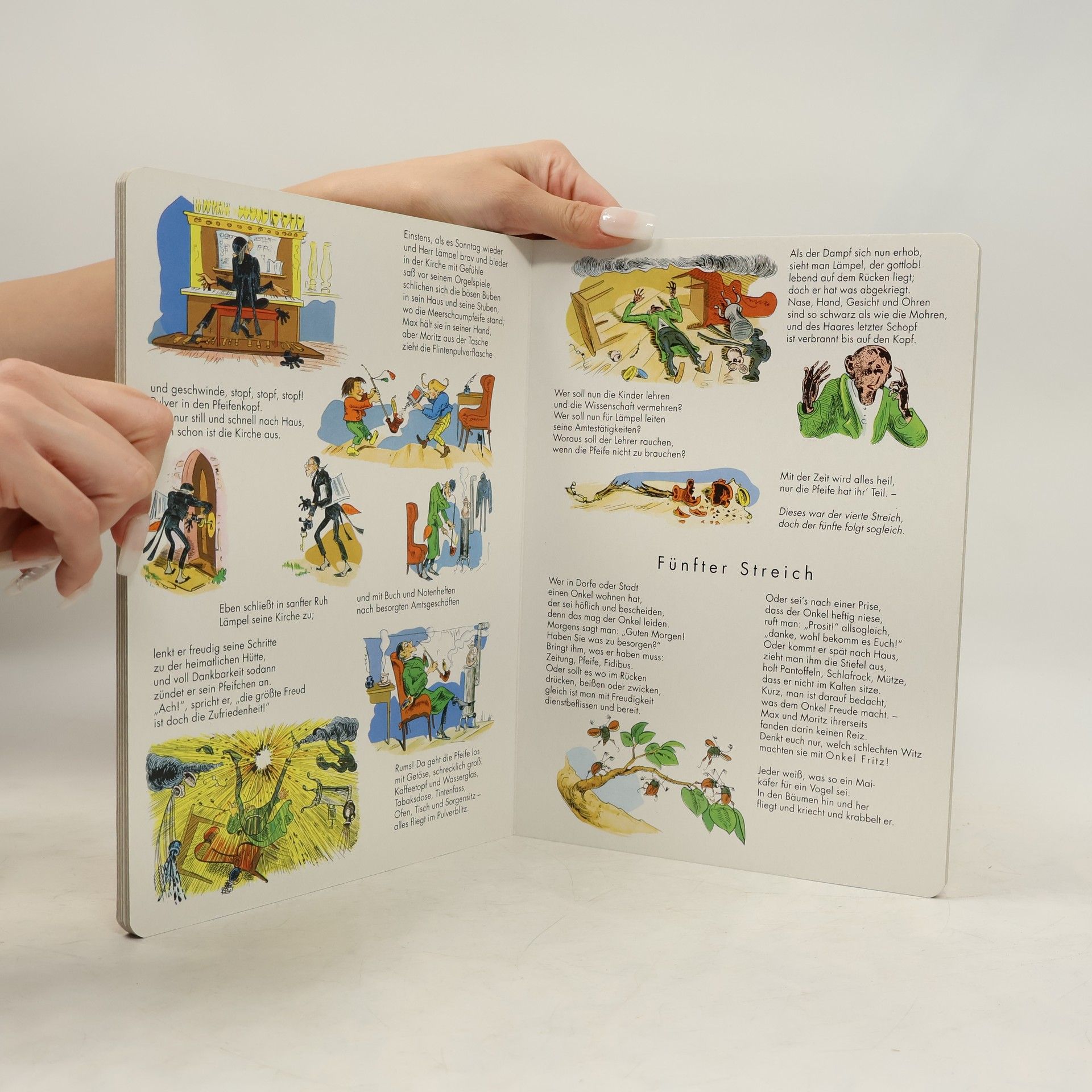 Der Kinderbuch-Klassiker - Strapazierfähige Pappe - abgerundete Ecken - kindgerechtes Großformat Ach, was muss man oft von bösen Kindern hören oder lesen! Wie zum Beispiel hier von diesen, Welche Max und Moritz hießen. Bis heute haben die Reime von Max und Moritz, die der Witwe Bolte die Hühner stehlen und dem Lehrer Lämpel Schießpulver in die Pfeife füllen, nichts von ihrer Faszination verloren. Schneider Böck, Onkel Fritz, Plisch und Plum, die beiden Hunde treffend hat Wilhelm Busch seine Figuren beschrieben und das mitunter rasante Geschehen in witzigen Bildern festgehalten. Die Geschichten von Wilhelm Busch werden in der originalen Fassung wiedergegeben. Sie enthalten teilweise überholte kulturelle Darstellungen.