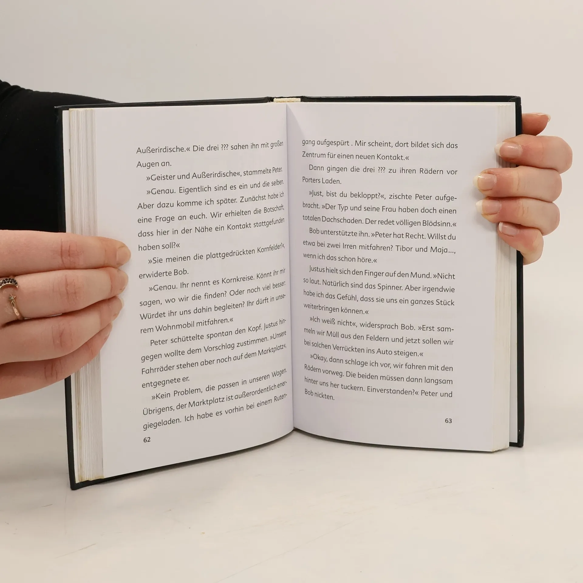 Ungewöhnliche Dinge geschehen in Rocky Beach. Wasserleitungen führen ein Eigenleben, Kornfelder tragen Muster, blauer Nebel zieht durch die Straßen und im Brunnen fließt blutrotes Wasser. Eigentlich glauben die drei ??? weder an Gespenster noch an Außerirdische. Aber vielleicht sind doch Geister im Spiel? Ein unheimlicher Fall für die drei Detektive.