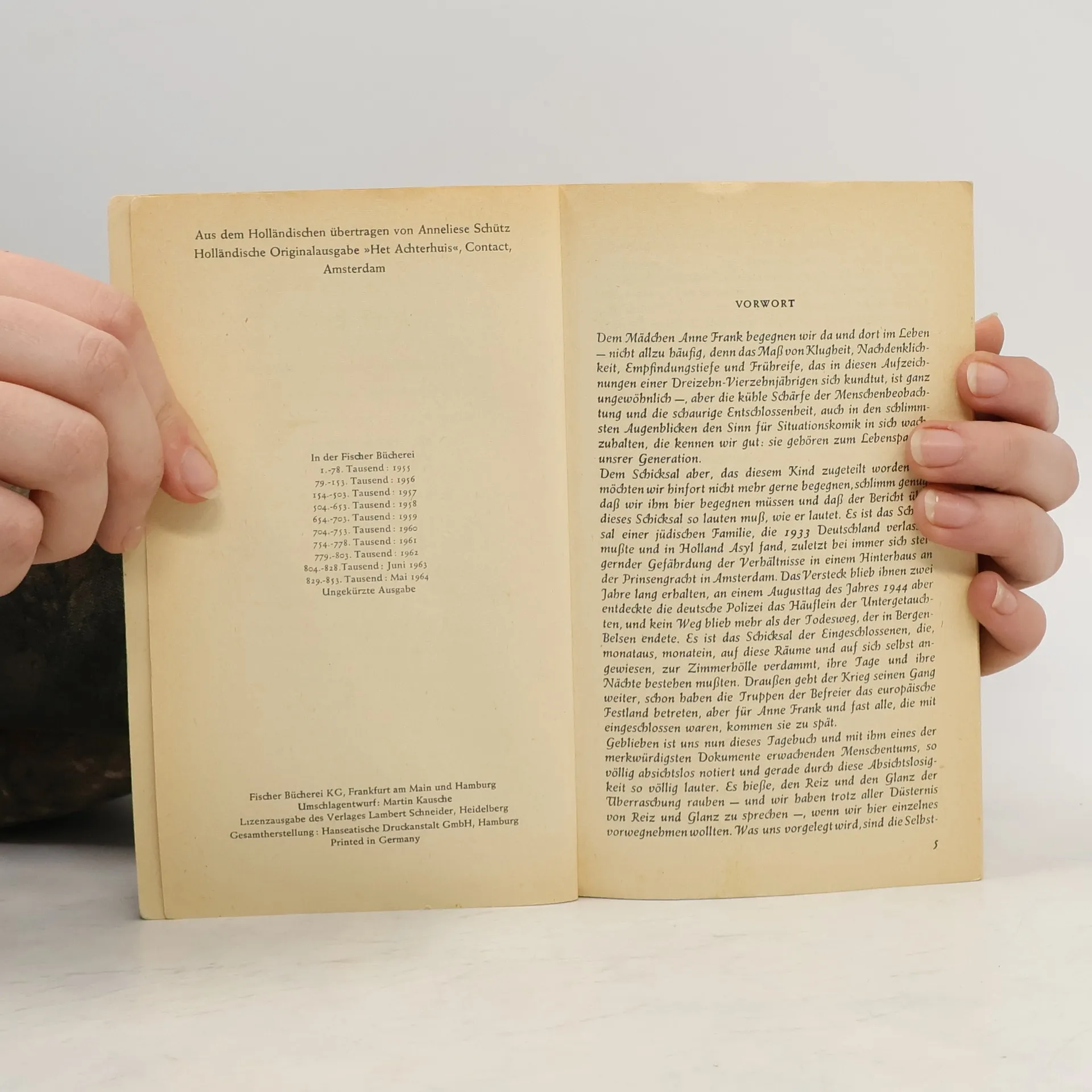 Die weltweit gültige und verbindliche Fassung des Tagebuchs von Anne Frank, autorisiert vom Anne Frank Fonds Basel, vereint Symbolik und Dokumentation. Es steht für den Völkermord an den Juden durch die Nazis und dokumentiert das Leben einer talentierten jungen Schriftstellerin. Diese Ausgabe ist die einzige autorisierte Fassung, die Annes überarbeitete Texte enthält, ohne die von ihrem Vater Otto Frank vorgenommenen Auslassungen. Mirjam Pressler hat eine neue, dem Stil des Originals entsprechende Übersetzung erarbeitet. Der vollständige Text vermittelt ein eindrucksvolles Bild von Annes Gefühls- und Gedankenwelt sowie ihren Fortschritten als Schriftstellerin. Anne Frank fragte sich: „Werde ich jemals Journalistin und Schriftstellerin werden? Ich hoffe es, ich hoffe es so sehr!“ Anne hinterließ zwei fragmentarische Tagebuchversionen: Version a ist der ursprüngliche Text, während Version b ihre unvollendete Bearbeitung darstellt, die 1986 veröffentlicht wurde. Version c war die erste Fassung, die Otto Frank 1947 veröffentlichte, wobei er sensible Stellen entfernte. Diese Version ist seit 1990 nicht mehr erhältlich. Version d, die vom Anne Frank Fonds autorisierte Leseausgabe, vereint die ungekürzten Texte der Versionen a und b und ist seit 1991 die verbindliche Grundlage für Übersetzungen in über 80 Sprachen. Alle Versionen, außer Version c, sind in verschiedenen Ausgaben von Mirjam Pressler im S. Fischer Verlag erhältlich.