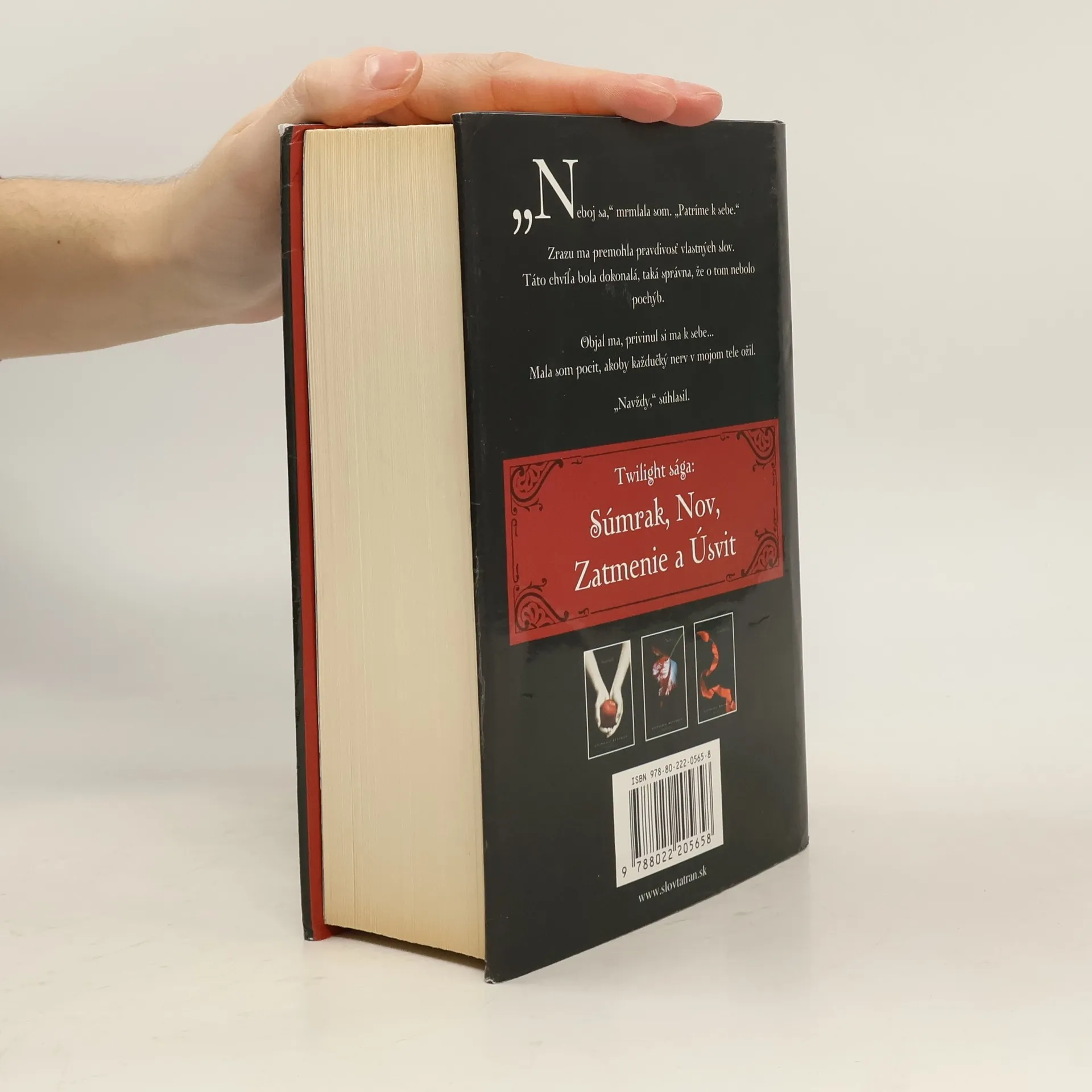 Keď milujete toho, kto vás zabíja, nemáte na výber. Ako by ste mohli utiecť, ako by ste mohli bojovať, keby ste práve tým ublížili niekomu, koho milujete? Ak mu nemáte dať nič viac a nič menej ako vlastný život, ako by ste mu ho mohli odoprieť? Niekomu, koho skutočne milujete? Bella Swanová je neodvolateľne zaľúbená do upíra – je to pre ňu krásny sen a zároveň nočná mora, ktoré vytvárajú jej nebezpečne vyhrotenú realitu. Na jednu stranu ju ťahá silná vášeň, ktorú cíti k Edwardovi Cullenovi a na druhú hlboké puto k vlkolakovi Jacobovi Blackovi a prežila búrlivý rok plný pokušenia, strát a sporov, kým dospela k rozhodujúcemu okamihu. Rozhodne sa teraz vstúpiť do temného, no zvodného sveta nesmrteľných, alebo bude pokračovať v ľudskom živote? Od odpovede na túto otázku závisí osud dvoch kmeňov. Keď sa Bella už raz rozhodla, začína sa prekvapivý sled nevídaných udalostí s potenciálne ničivými a tajomnými dôsledkami. Práve keď sa zdá, že sa zamotané pradivá Bellinho života – ktoré sa po prvý raz objavili v Súmraku, potom sa zamotali a potrhali v Nove a Zatmení – znova rozpletú a usporiadajú, mohli by byť zničené... navždy? Úsvit, úžasný a s napätím očakávaný záver ságy Twilight, odhaľuje tajomstvá a záhady tohto fascinujúceho romantického eposu, ktorý okúzlil milióny čitateľov.