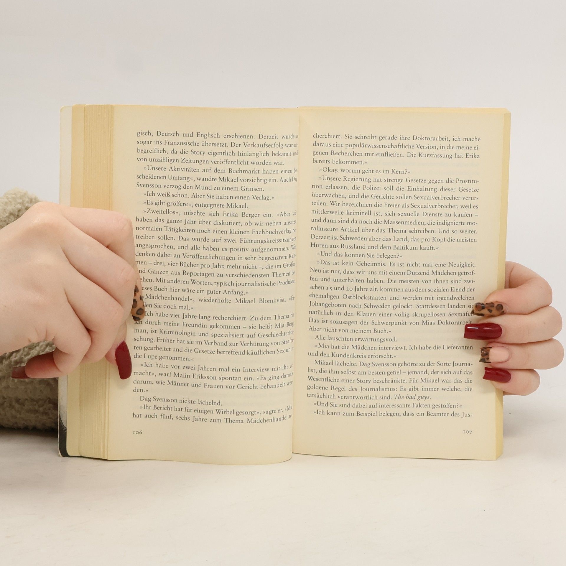 Mikael Blomkvist recherchiert in einem besonders brisanten Fall von Mädchenhandel, die Hintermänner bekleiden höchste Regierungsämter. Als sein Informant tot aufgefunden wird, fällt der Verdacht auf Blomkvists Partnerin Lisbeth Salander. Eine mörderische Hetzjagd beginnt. Der neue große Roman des preisgekrönten Bestsellerautors Stieg Larsson. Ein ehrgeiziger junger Journalist bietet Mikael Blomkvist für sein Magazin „Millennium“ eine Story an, die skandalöser nicht sein könnte. Amts- und Würdenträger der schwedischen Gesellschaft vergehen sich an jungen russischen Frauen, die gewaltsam ins Land geschafft und zur Prostitution gezwungen werden. Als sich Lisbeth Salander in die Recherchen einschaltet, stößt sie auf ein besonders pikantes Detail: Nils Bjurman, ihr ehemaliger Betreuer, scheint in den Mädchenhandel involviert zu sein. Wenig später werden der Journalist und Nils Bjurman tot aufgefunden. Die Tatwaffe trägt Lisbeths Fingerabdrücke. Sie wird an den Pranger gestellt und flüchtet. Nur Mikael Blomkvist glaubt an ihre Unschuld und beginnt, auf eigene Faust zu ermitteln. Seine Nachforschungen führen in Lisbeths Vergangenheit. Eine Vergangenheit, die ihn bald das Fürchten lehrt.