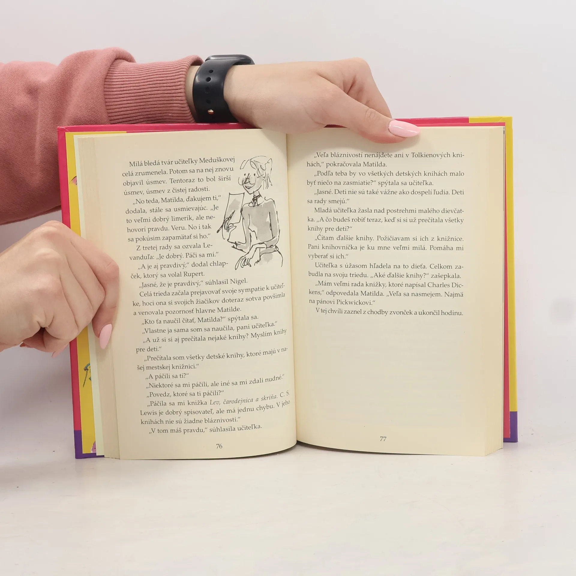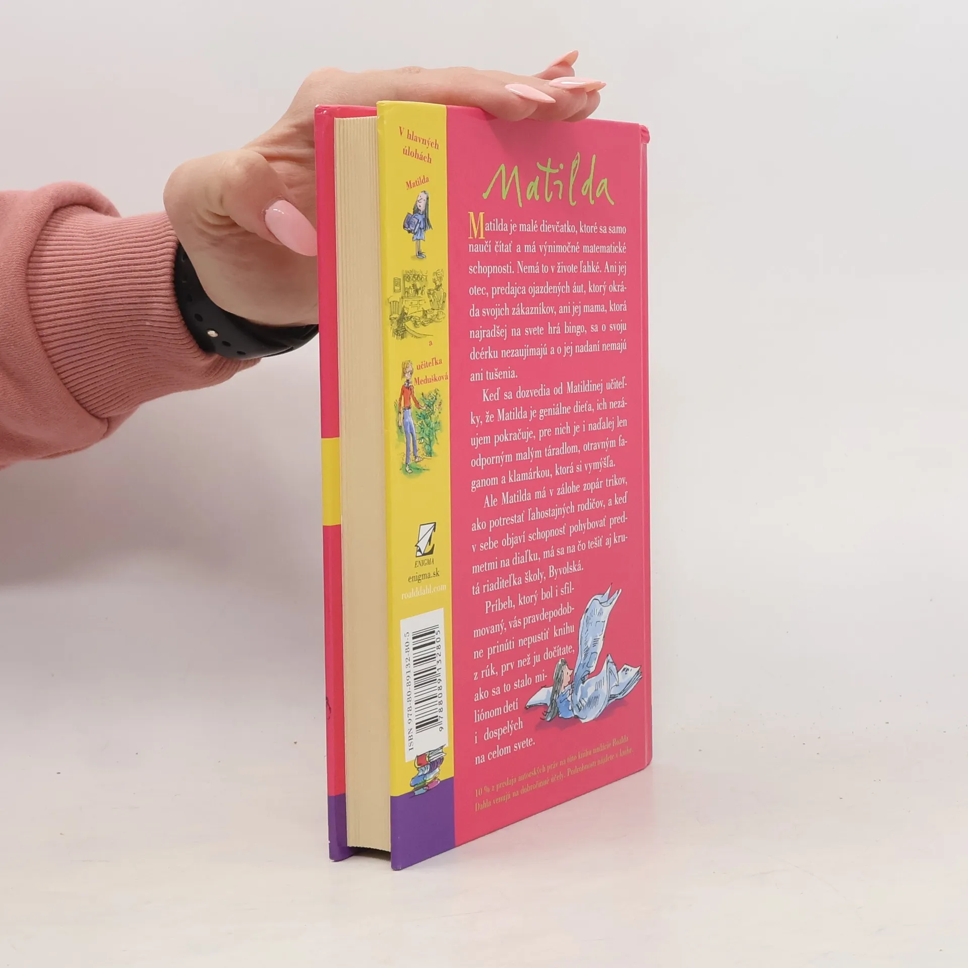 Príbeh malého, výnimočne nadaného dievčatka, ktoré v sebe objaví schopnosť pohybovať predmetmi na diaľku Vás pravdepodobne prinúti - ako sa to stalo miliónom detí, ale i dospelých na celom svete - nepustiť knihu z rúk prv než ju dočítate. Vďaka deju plnému napätia, originálnych nápadov a svojrázneho, niekedy až čierneho humoru sa kniha stala ihneď po prvom vydaní v roku 1988 bestsellerom. K úspechu knihy prispievajú aj nenapodobiteľné ilustrácie jedného z najrenomovanejších britských ilustrátorov, Quentina Blaka, dlhoročného spolupracovníka R. Dahla. S potešením predkladáme túto knihu slovenským deťom, ale aj všetkým dospelým, ktorí si chcú v zhone všedného dňa pripomenúť zázračno detskej duše.