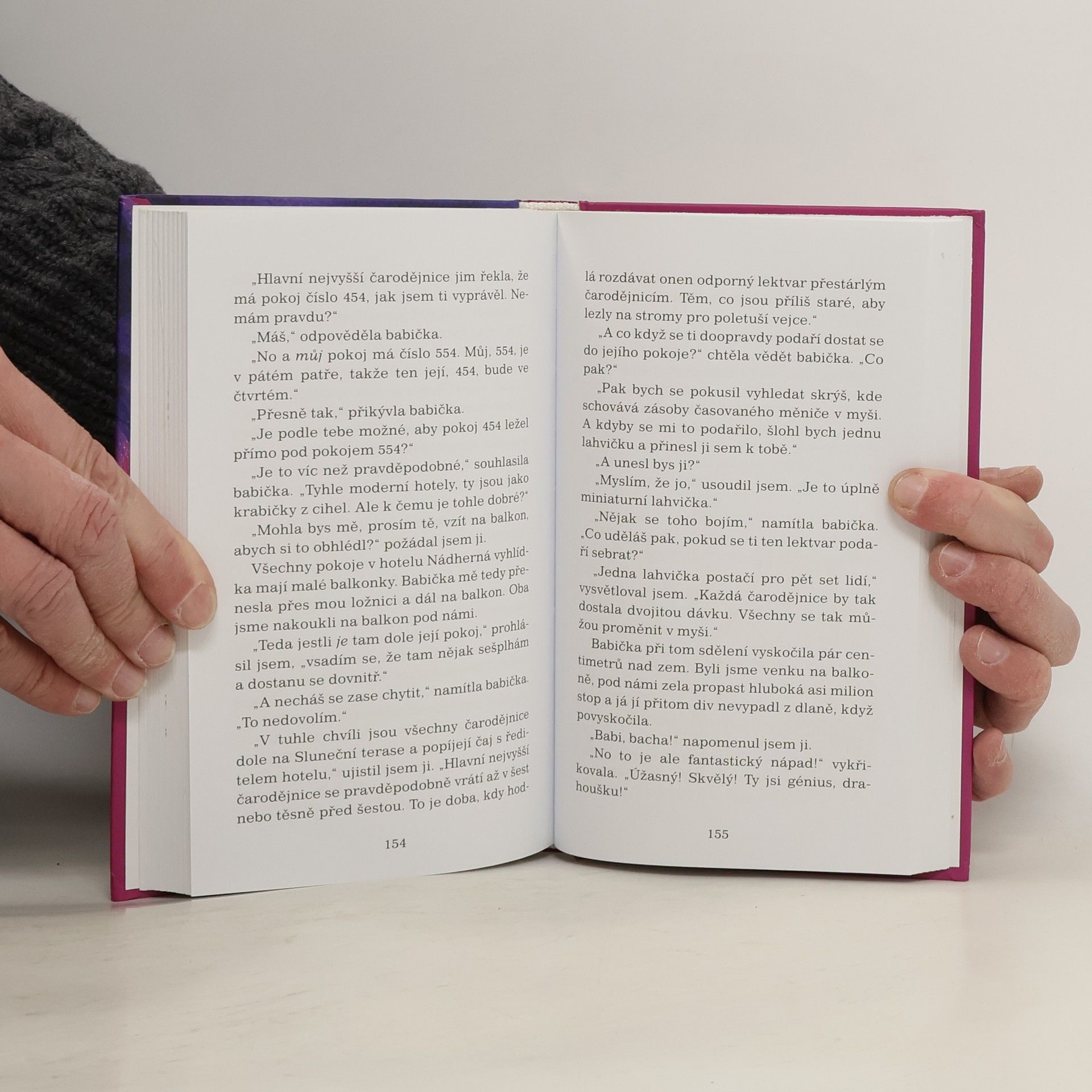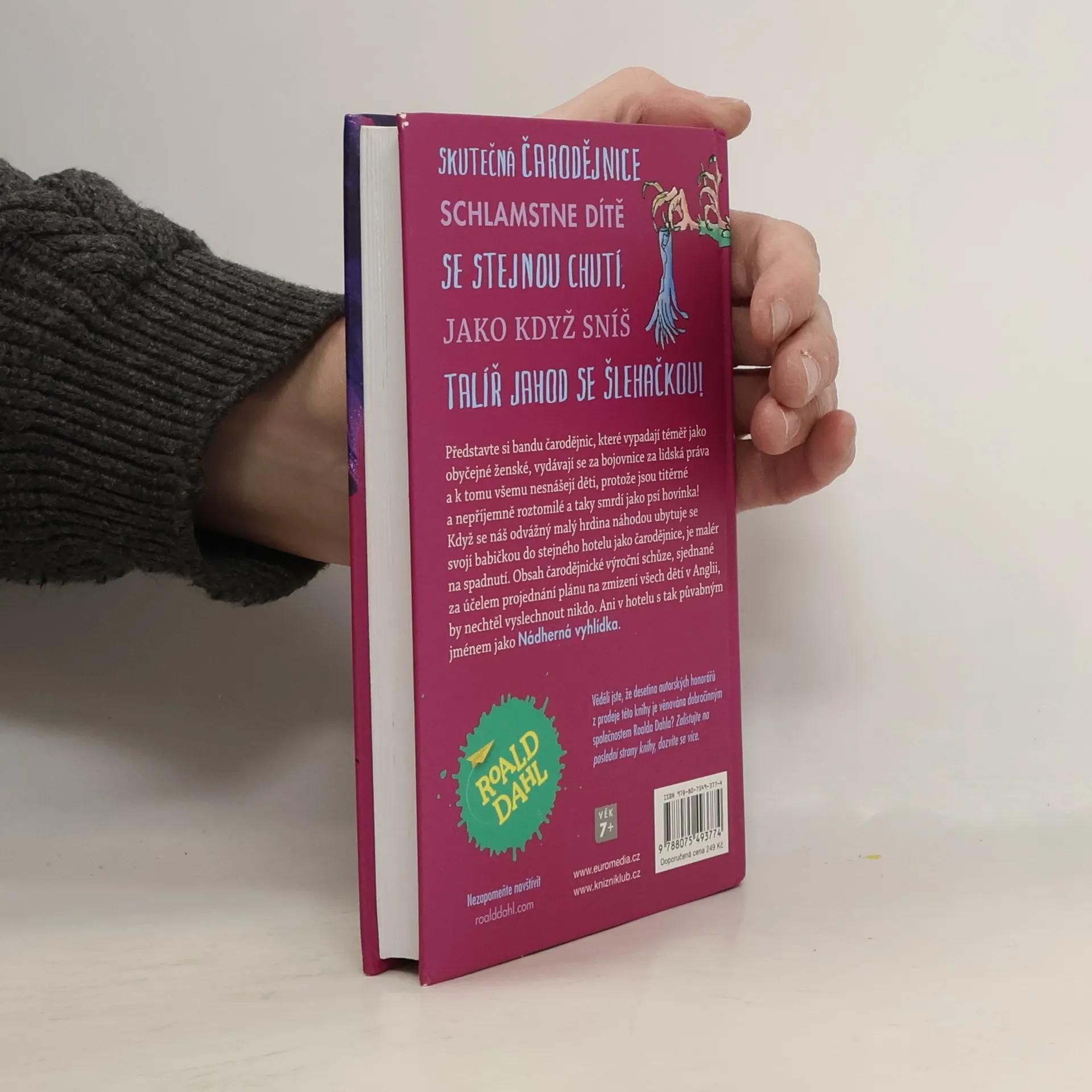Skutečná čarodějnice schlamstne dítě se stejnou chutí, jako když sníš talíř jahod se šlehačkou! Představte si bandu čarodějnic, které vypadají téměř jako obyčejné ženské, vydávají se za bojovnice za lidská práva a k tomu ke všemu nesnášejí děti, protože jsou titěrné a nepříjemně roztomilé a taky smrdí jako psí hovínka! Když se náš odvážný malý hrdina náhodou ubytuje se svojí o nic víc sympatickou babičkou do stejného hotelu jako čarodějnice, je malér na spadnutí. Obsah čarodějnické výroční schůze, sjednané za účelem projednání plánu na zmizení všech dětí v Anglii, by nechtěl vyslechnout nikdo. Ani v hotelu s tak půvabným jménem jako Nádherná vyhlídka. Kniha je určena pro děti od 7 let.