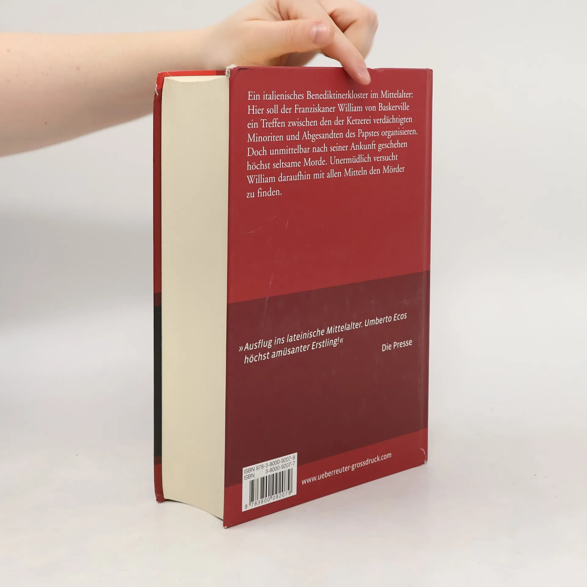 Bruder William von Baskerville besucht im Auftrag des Papstes eine mittelalterliche Benediktiner-Abtei. Sein Aufenthalt wird zur einer Schreckenszeit für ihn und seine Mitbrüder: In den 7 Tagen und Nächten, die er hinter den Klostermauern verbringt, wird er Zeuge einer unheimlichen Mordserie. - Anspruchsvoller historischer Roman mit Krimielementen.