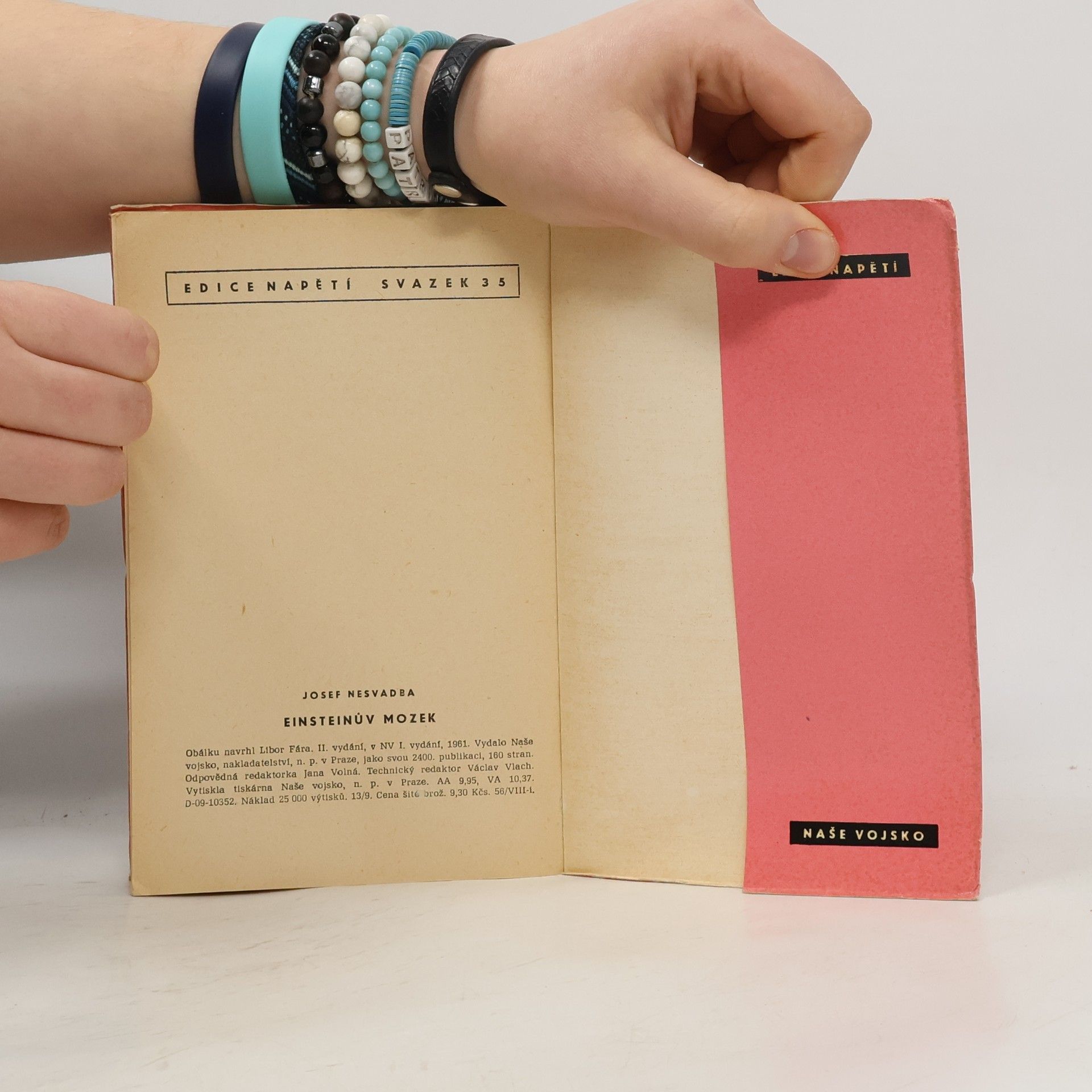 Druhá sbírka jedenácti povídek s fantastickými náměty ze světa kosmonautů a vědeckých objevů zítřka osvětluje problematiku člověka ve světě ovládaném technikou a netušenými vynálezy...EINSTEINŮV MOZEKPOSLEDNÍ DOBRODRUŽSTVÍ KAPITÁNA NEMAVYNÁLEZ PROTI SOBĚSTELLA Z TŘETÍ HVĚZDYDRYÁKCHEMICKÝ VZOREC OSUDUBLBEC Z XEENEMUENDEVZPOURA NA LODI ODYSEAZTRACENÁ TVÁŘPOJEDNÁNÍ O VZDUŠNÝCH KORÁBECHPO STOPÁCH SNĚŽNÉHO MUŽE