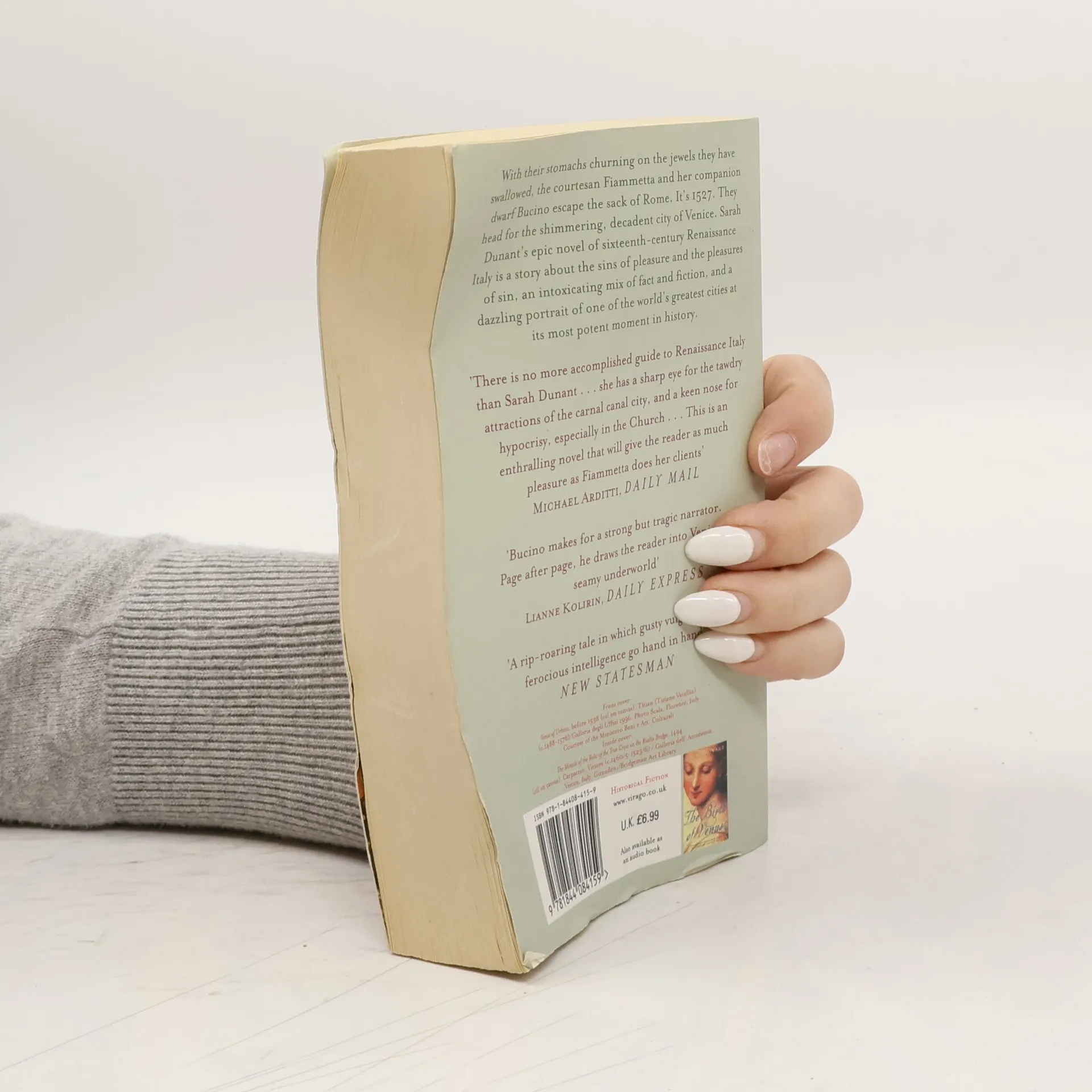 1527. While the Papal city of Rome burns - brutally sacked by an invading army including Protestant heretics - two of her most interesting and wily citizens slip away, their stomachs churning on the jewels they have swallowed as the enemy breaks down their doors. Though almost as damaged as their beloved city, Fiammetta Bianchini and Bucino Teodoldi - a fabulous courtesan and her dwarf companion - are already planning their future. They head for the shimmering beauty of Venice, a honey pot of wealth and trade where they start to rebuild their business. As a partnership they are invincible: Bucino, clever with a sharp eye and a wicked tongue and Fiammetta, beautiful and shrewd, trained from birth to charm, entertain and satisfy men who have the money to support her. Venice, however, is a city which holds its own temptations. From the admiring Turk in search of human novelties for his Sultan's court, to the searing passion of a young lover who wants more than his allotted nights. But the greatest challenge comes from a young blind woman, a purveyor of health and beauty, who insinuates her way into their lives with devastating consequences for them all.