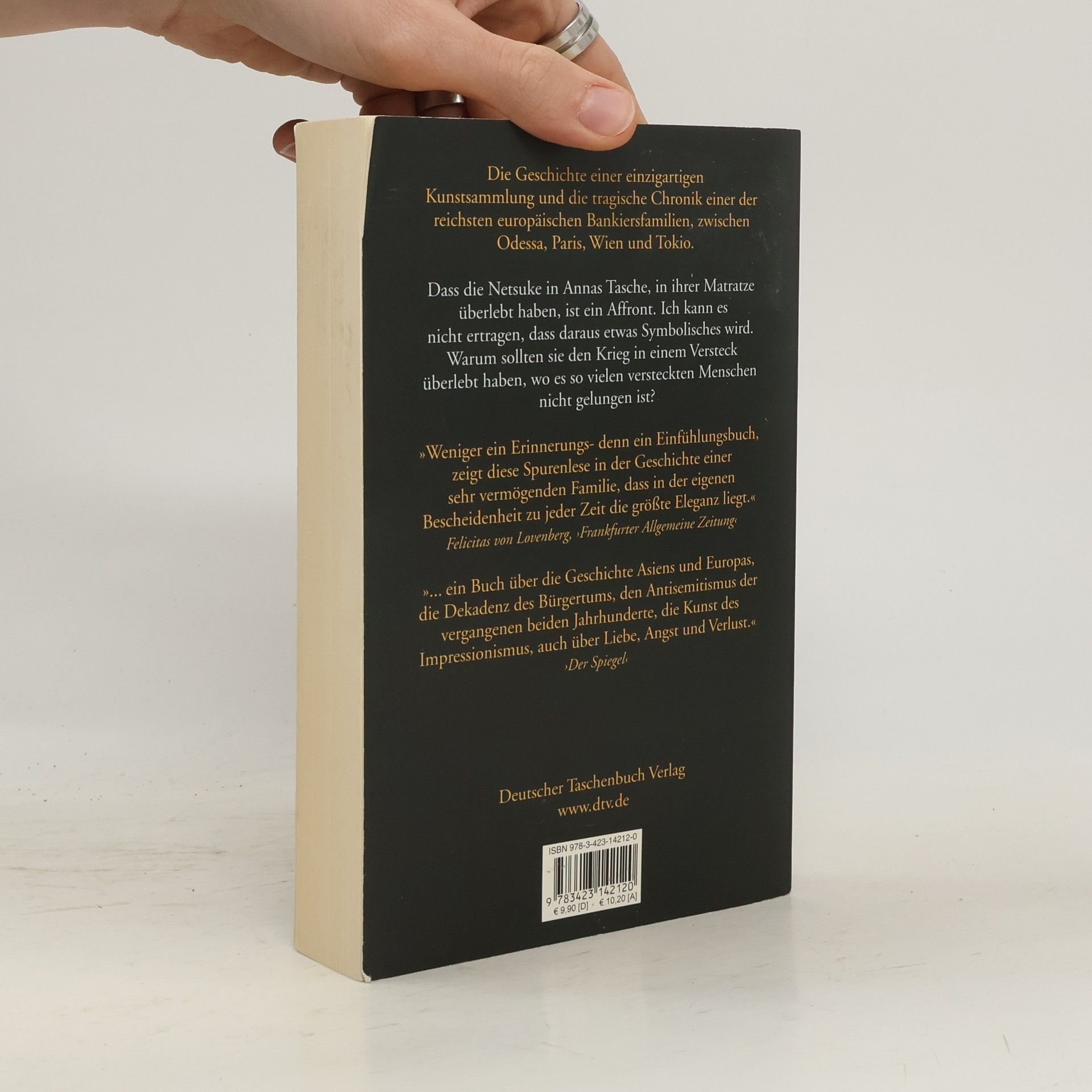 Der Bestseller jetzt im Taschenbuch! 264 Netsuke, japanische Miniatur-Schnitzereien aus Holz und Elfenbein, liegen in der Vitrine des britischen Töpfers Edmund de Waal, Nachkomme der jüdischen Familie Ephrussi aus Odessa. Wie sie dorthin kamen, erzählt dieses Erinnerungsbuch. Vom Paris der Belle Époque gelangte die Sammlung ins Wien des Fin de Siècle, aus Tokio in den 1950er-Jahren schließlich nach London. Die Ephrussis, einst an Einfluss und Reichtum den Rothschilds ebenbürtig, erlebten mit dem »Anschluss« 1938 den Niedergang – ihr gesamtes Vermögen fiel der »Arisierung« zum Opfer. Nur die Netsuke wurden – jede einzeln – in der Schürze des Dienstmädchens Anna gerettet. Eine Familienchronik, in der sich europäische Geschichte der letzten hundertfünfzig Jahre spiegelt, eine Wunderkammer, eine brillant geschriebene Erkundung über Besitz und Verlust, über das Leben der Dinge und die Fortdauer der Erinnerung.
