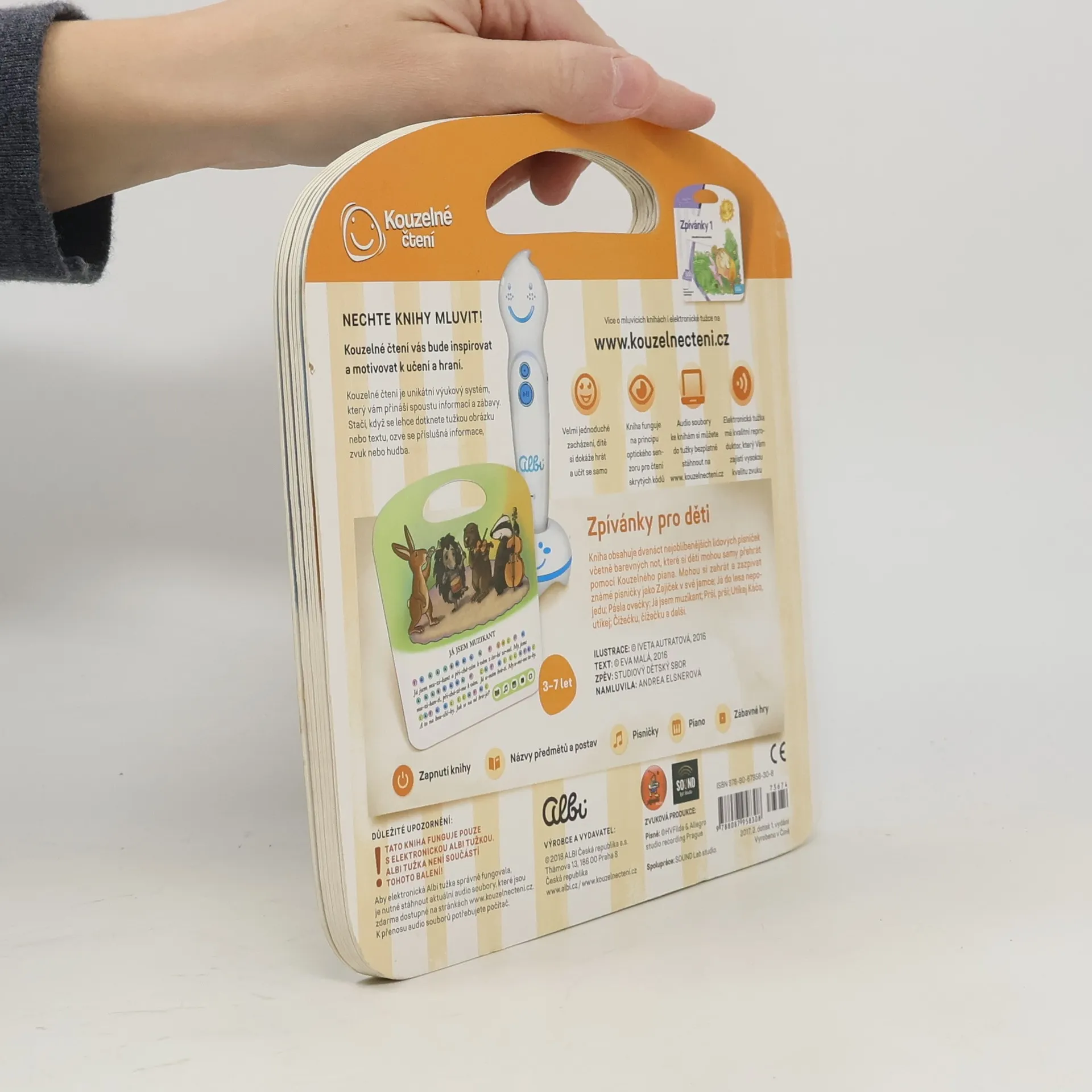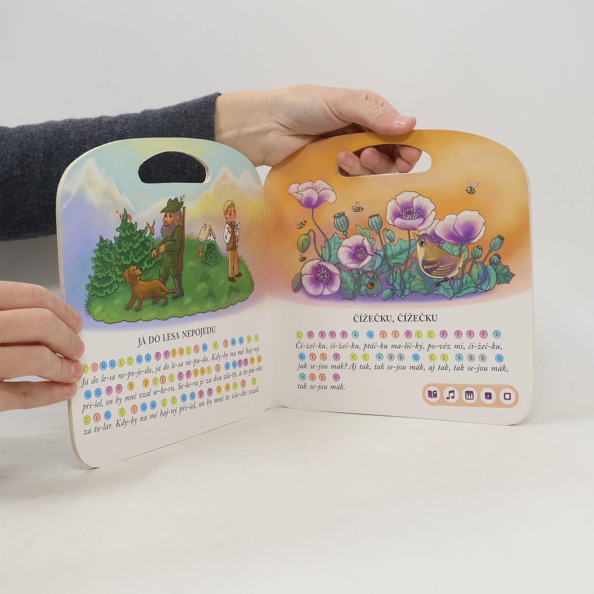 Kniha Zpívánky 2 obsahuje 12 mezi dětmi oblíbených lidových písniček včetně barevných not, které si děti mohou samy přehrát pomocí Kouzelného piana. Mohou si zahrát a zazpívat známé písničky jako Zajíček v své jamce, Já do lesa nepojedu, Pásla ovečky, Já jsem muzikant, Prší prší, Utíkej Káčo, utíkej, Čížečku, čížečku, Když jsem já sloužil, Kalamajka, Když jsem husy pásala, Šla Nanynka do zelí a Běží liška k táboru. Písně v knize Zpívánky 2 si můžete přehrát ve 2 verzích - zpívané a instrumentální podobě. Pomocí ikony knihy a ikony jednoduchého kvízu se děti učí porozumět zpívanému textu. Kniha obsahuje přes 500 zvuků a textů. Je namluvena Andreou Elsnerovou. Interaktivní mluvící kniha je určena pro děti od 3 do 7 let.