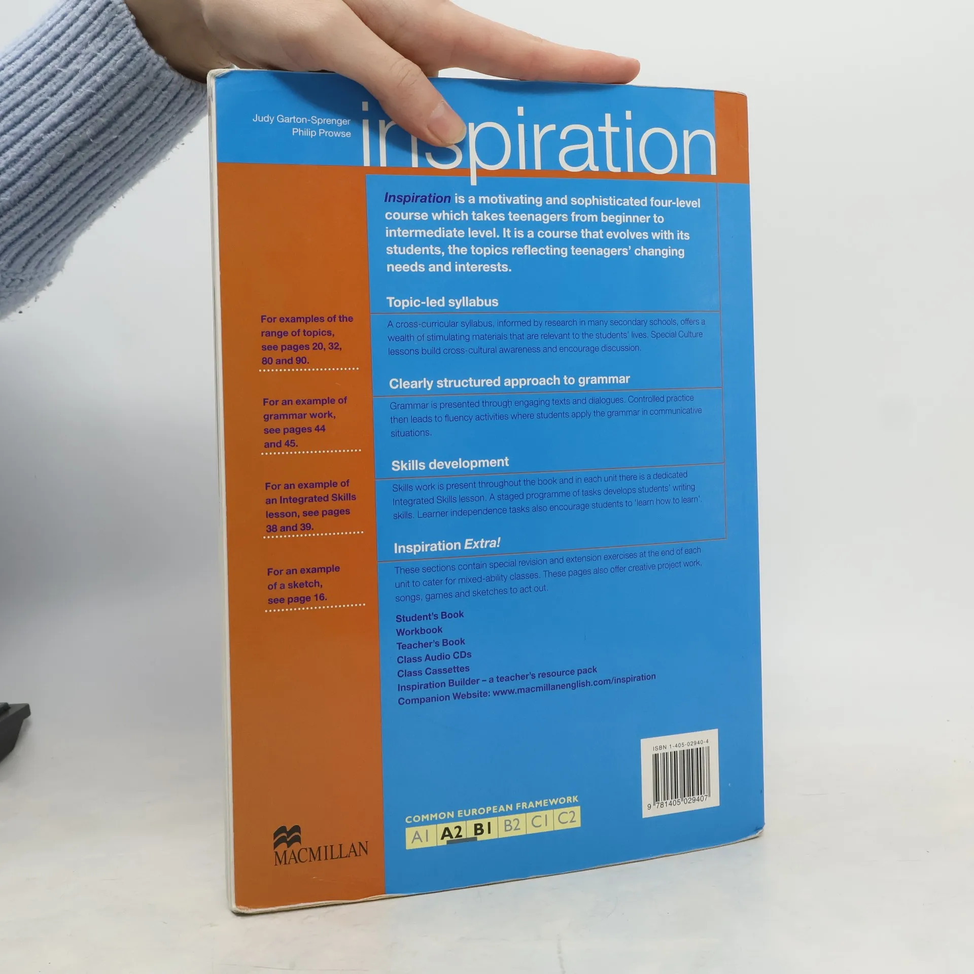 "Award WinnerJoin thousands of students all over the already using this energetic course designed to take teenagers from beginner to intermediate level. Combining a strong skill syllabus with engaging topics and imaginative activities it offers the perfect balance of grammar points and communicative tasks.Inspiration grows with its students to reflect their changing needs and interests, making it the ideal choice to motivate teenagers.Key Features:Learner autonomy is promoted alongside