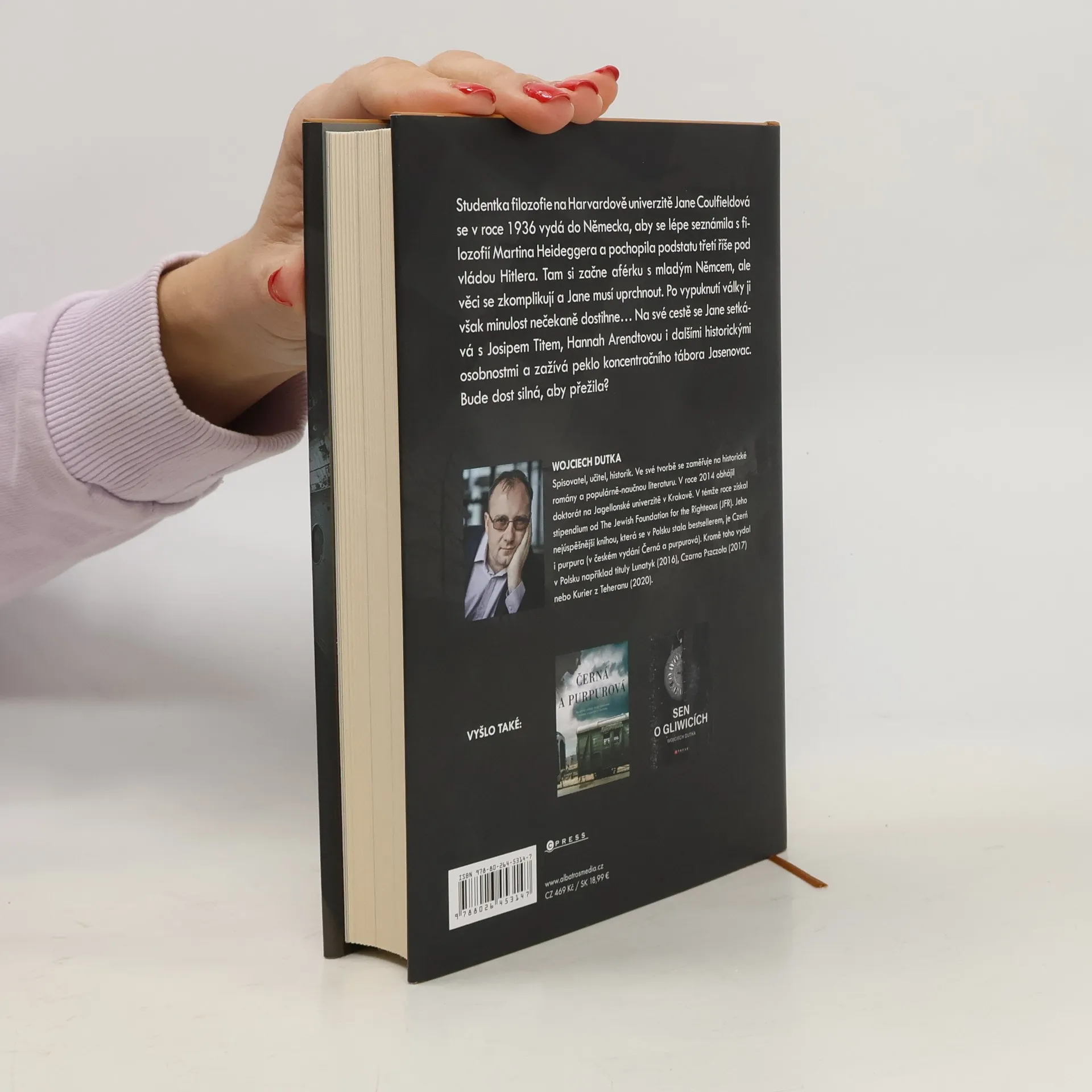 Dojemný román o ženském údělu, lásce a balkánské Osvětimi. Studentka filozofie na Harvardově univerzitě Jane Coulfieldová se v roce 1936 vydá do Německa, aby se lépe seznámila filozofií Martina Heideggera a pochopila podstatu třetí říše pod vládou Hitlera. Tam si začne aférku s mladýmNěmcem, ale věci se zkomplikují a Jane musí uprchnout. Po vypuknutí války ji však minulost nečekaně dostihne… Na své cestě se Jane setkává s Josipem Titem, Hannah Arendtovou i dalšími historickými osobnostmi a zažívá peklo koncentračního tábora Jasenovac. Bude dost silná, aby přežila?