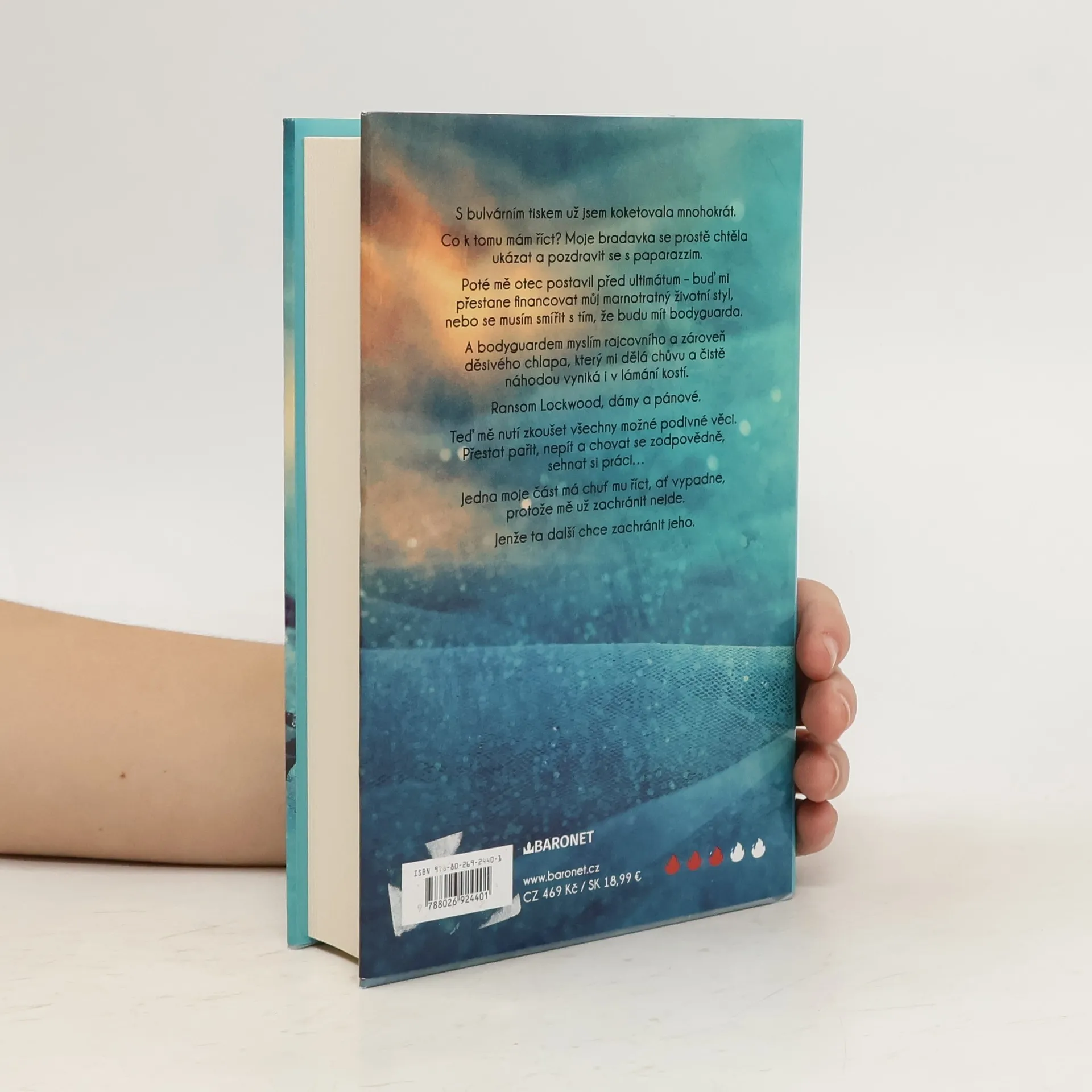 Příběh s romantickou zápletkou od americké autorky. Hallie a její divoký život královny večírků musí nutně jednoho dne skončit. A ta chvíle právě přišla spolu s okouzlujícím, ale nebezpečným bodyguardem Ransomem Lockwoodem. Nebudu si hrát na nevinnou, až příliš často jsem se dostala do hledáčku bulváru. A po tom posledním incidentu s bradavkou mi otec dal ultimátum: buď přestane platit můj okázalý životní styl, nebo si nechám přidělit bodyguarda. Ransom Lockwood, dámy a pánové. Sexy nabušený tělesný strážce, který mě teď nutí, abych přestala pařit a uklidnila se... Jedna moje část by ho nejradši poslala do háje. A ta druhá? Ta ho chce zachránit. Nevím, jak to dopadne, ale jedno je jisté - než to zjistím, užiju si dost zábavy. Nakladatelská anotace.