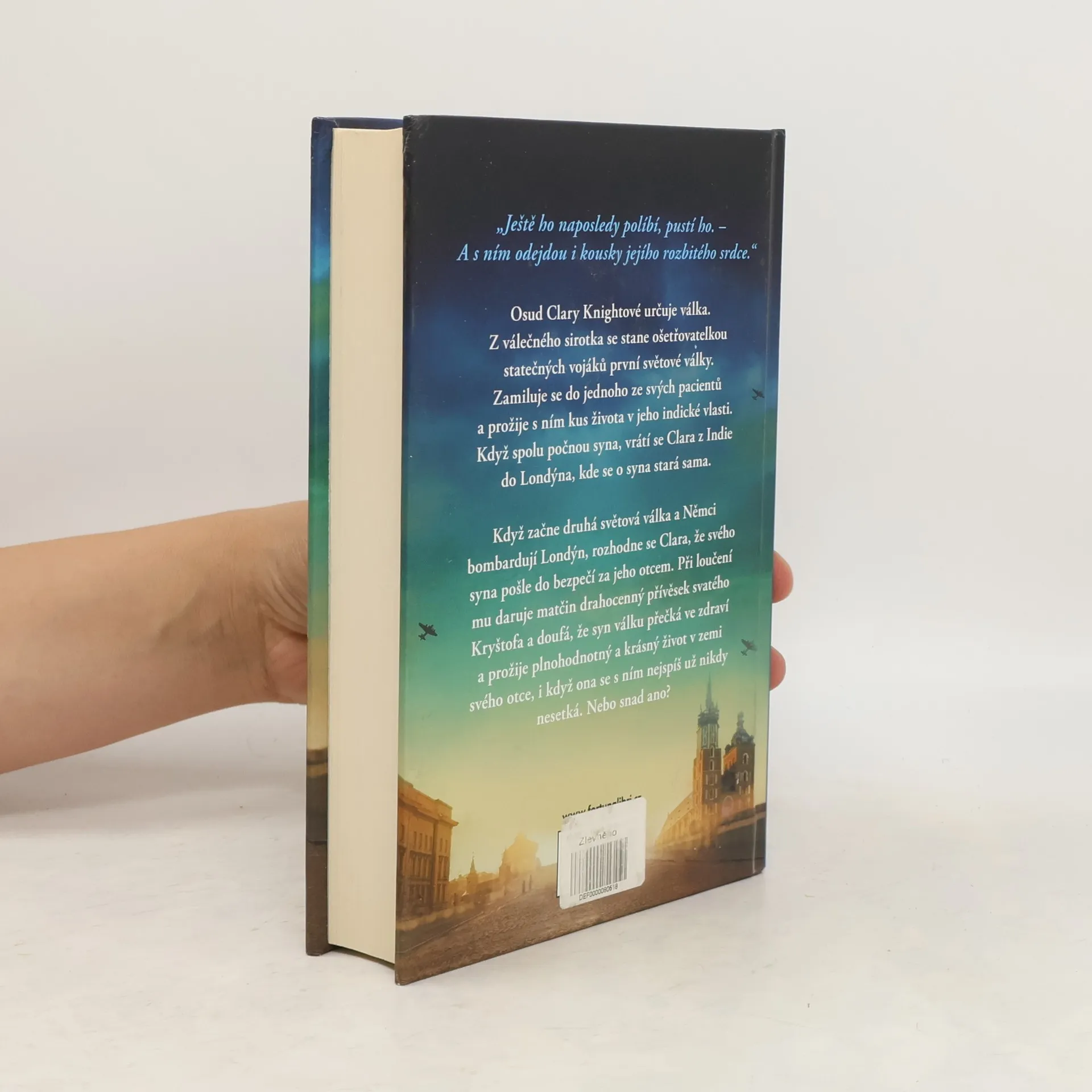 „Ješte ho naposledy políbí, pustí ho. – A s ním odejdou i kousky jejího rozbitého srdce.“ Osud Clary Knightové určuje válka. Z válečného sirotka se stane ošetřovatelkou statečných vojáku první světové války. Zamiluje se do jednoho ze svých pacientu a prožije s ním kus života v jeho indické vlasti. Když spolu počnou syna, vrátí se Clara z Indie do Londýna, kde se o syna stará sama. Když začne druhá světová válka a Němci bombardují Londýn, rozhodne se Clara, že svého syna pošle do bezpečí za jeho otcem. Při loučení mu daruje matčin drahocenný přívěsek svatého Kryštofa a doufá, že syn válku přečká ve zdraví a prožije plnohodnotný a krásný život v zemi svého otce, i když ona se s ním nejspíš už nikdy nesetká. Nebo snad ano?
