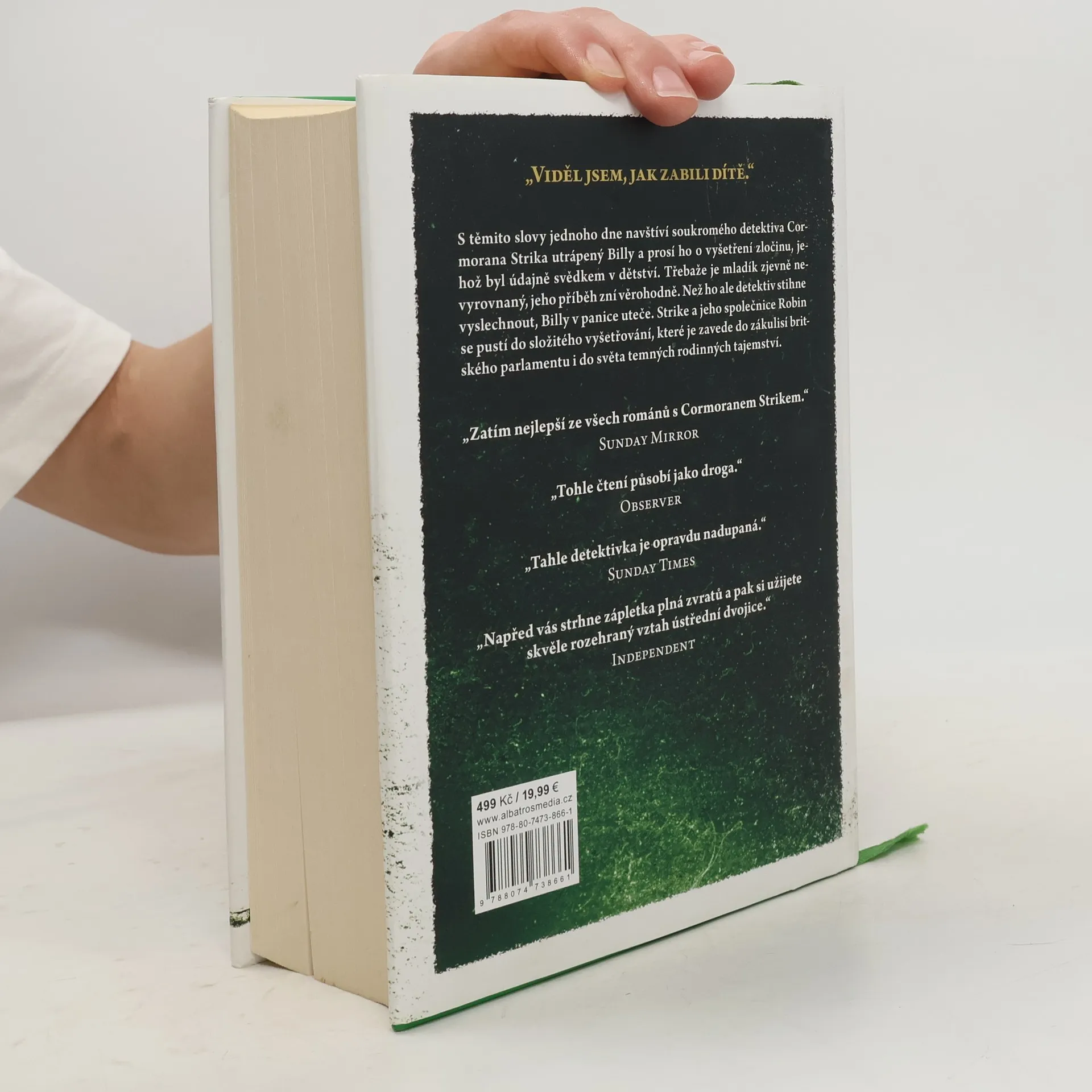 Čtvrtý případ Cormorana Strika a Robin Ellacottové „Viděl jsem, jak zabili dítě.“ S těmito slovy jednoho dne navštíví utrápený mladý muž soukromého detektiva Cormorana Strika a prosí ho o vyšetření zločinu, jehož byl údajně svědkem v dětství. Třebaže je mladík zjevně nevyrovnaný, jeho příběh zní věrohodně. Než ho ale detektiv stihne vyslechnout, muž v panice uteče. Strike a jeho společnice Robin se pustí do složitého vyšetřování, které je zavede do zákulisí britského parlamentu i do světa temných rodinných tajemství.