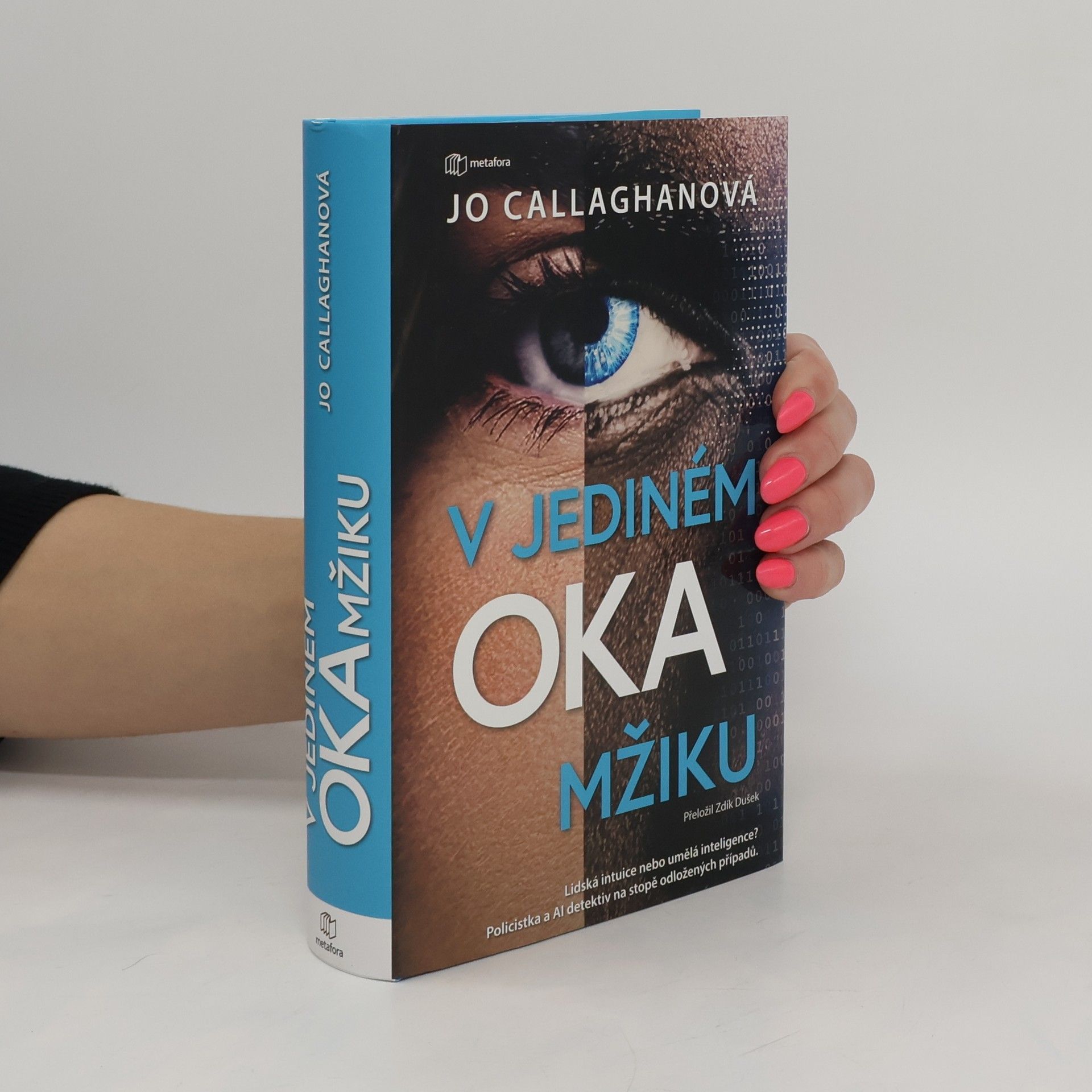 Ve Spojeném království každou minutu a půl zmizí člověk. Beze stopy. Jako by se vypařil. Vrchní superintendantka Kat Franková je zkušená policistka, spoléhající na svou intuici. Jako ovdovělá matka dospívajícího syna navíc dobře ví, co znamená ztratit někoho blízkého, a je hluboce empatická. Právě proto jí svěřili vedení pilotního projektu na otestování možnosti spolupráce policie s umělou inteligencí. Kat má v týmu AI detektiva Locka (jehož hologram dost výrazně připomíná urostlého černošského herce Chadwicka Bosemana) a během řešení dvou odložených případů se její zkušenost a intuice nevyhnutelně střetávají s Lockovou neúprosnou logikou. Umělá inteligence a lidská zkušenost. Logika a intuice. Proti sobě, nebo spolu? Dokáže tato protikladná dvojice spolupracovat a vyřešit znovuotevřené případy dříve, než skončí další člověk jako položka v policejní statistice? V jediném okamžiku je skvělá detektivka, vzrušující nový hlas na literární scéně kladoucí otázku, co vlastně znamená být člověkem. Vychází v překladu Zdíka Duška.