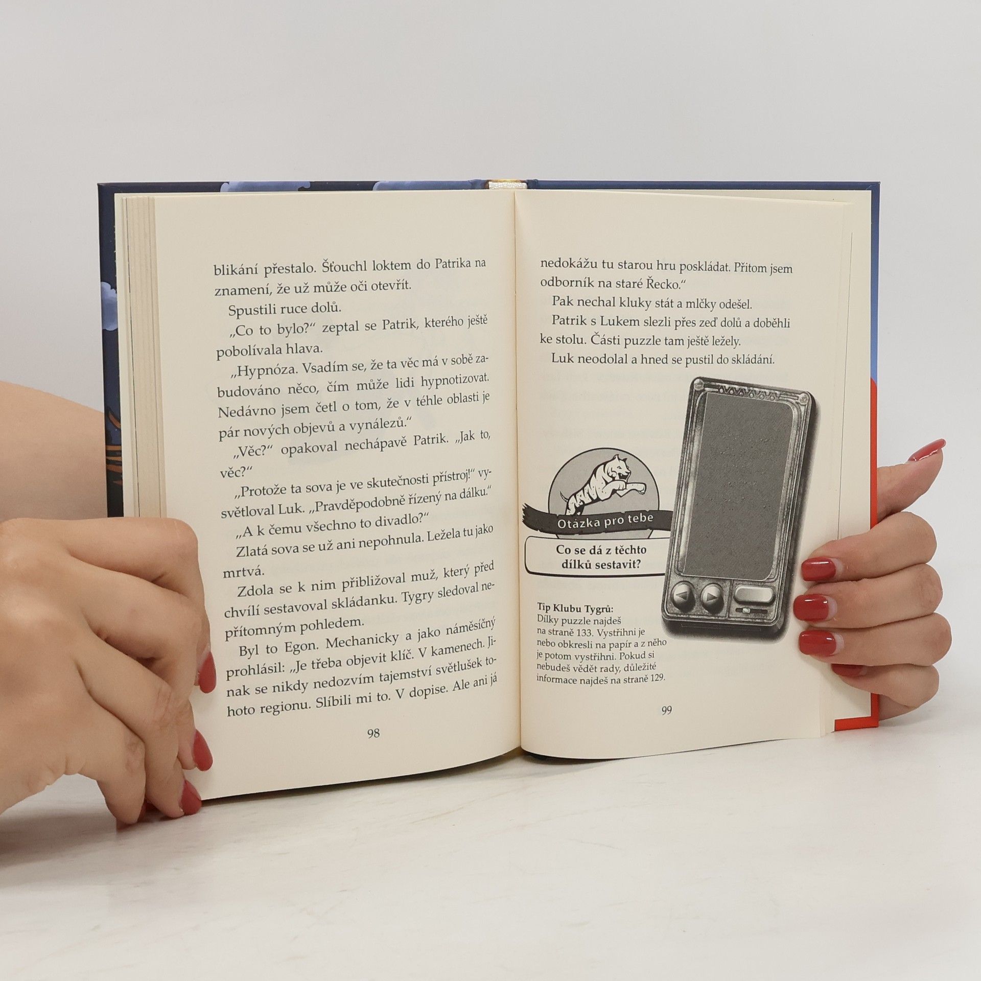 Tygři jsou na prázdninách na řeckých ostrovech. Jedné noci na Patrika zaútočí obrovská sova se zlatým peřím. Patrik se okamžitě snaží zburcovat své kamarády Biggi a Luka, ale ti tvrdě spí, a sova mezitím uletí. Pátrání po tom, odkud se vzala, je zavede až k vykopávkám, na které je uvalena strašlivá kletba. Podaří se kamarádům z Klubu Tygrů překonat nástrahy a odhalit dávné tajemství? Zapoj se do pátrání i ty a zažij celé dobrodružství z první ruky!