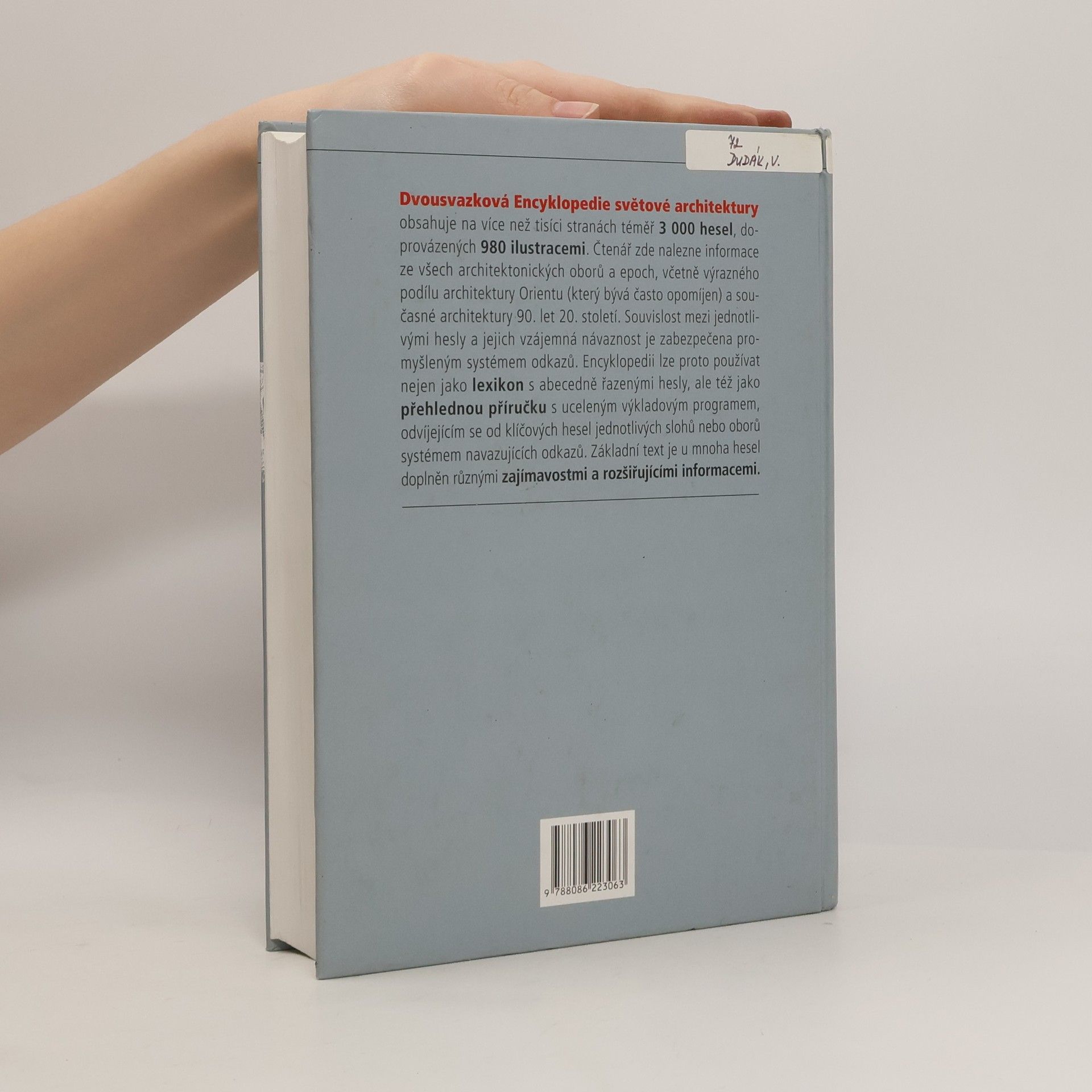 Dvousvazková encyklopedie: díl 1. A-K., díl 2. L-Ž. Kniha obsahuje abecedně řazená hesla ze všech architektonických epoch a oborů. Hesla podávají informace o charakteristice, vzniku, vývoji a předpokladech slohu, o stavební technice i o prostorovém členění. Jednotlivá hesla jsou vzájemně provázaná systémem odkazů k jednotlivým stylům, osobnostem a obsahují i stručný dějinný přehled a charakteristiku doby. Encyklopedie vedle hesel epoch a slohů obsahuje syntetická hesla pojmů architektonické teorie, hesla stylů a škol, věcná hesla (odborné termíny, článkoví, materiály, konstrukce) a biografická hesla (život a dílo, charakteristika architekta a význam). Knihu doplňují ilustrační kresby.