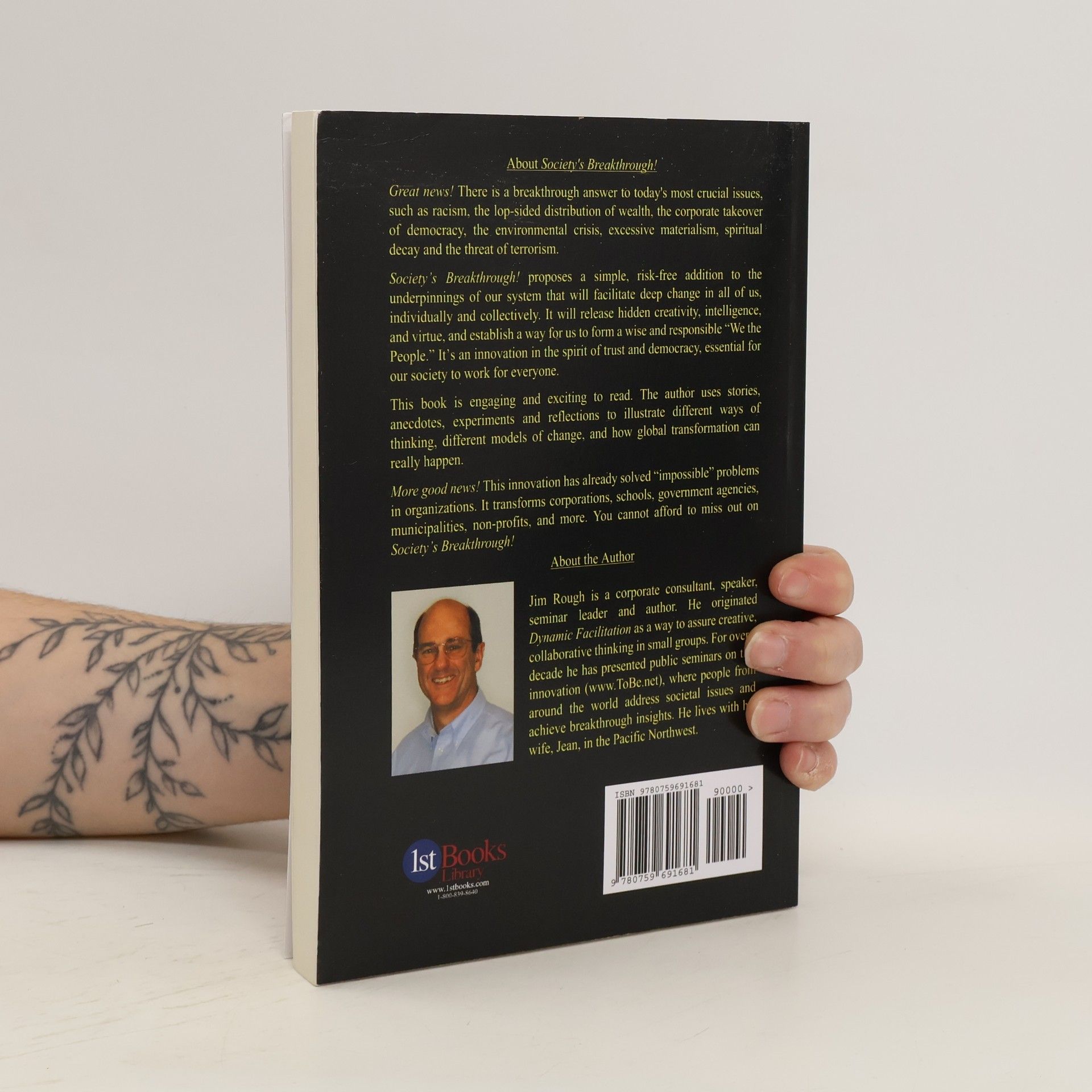 Good News! Important news! There is a Breakthrough answer to today's crucial issues ? the threat of terrorism, racism, the lop-sided distribution of wealth, the corporate takeover of democracy, the non-involvement of citizens in government, materialism, alienation and spiritual decay.Sound too good to believe? By the end of this book, you will wonder why this simple adjustment to the underpinnings of our society wasn?t made long ago. Society?s Breakthrough proposes a seemingly innocuous change to our system that would facilitate deep change in us ? awakening our awareness, creativity, wisdom, and virtue. It would establish a way for us to form a wise and responsible 'We the People' and help us create 'true democracy' as a nation.This book is a fun and exciting read, not just because of the workable idea it describes, but because it is original in so many ways. It uses stories, anecdotes, experiments and reflections to illustrate different ways of thinking, different models of change, and how global transformation can really happen.More good news! The proposed idea is already being tested in large organizations ? cities, schools, government agencies, corporations, and professional associations ? and it works. You cannot afford to miss out on Society?s Breakthrough!