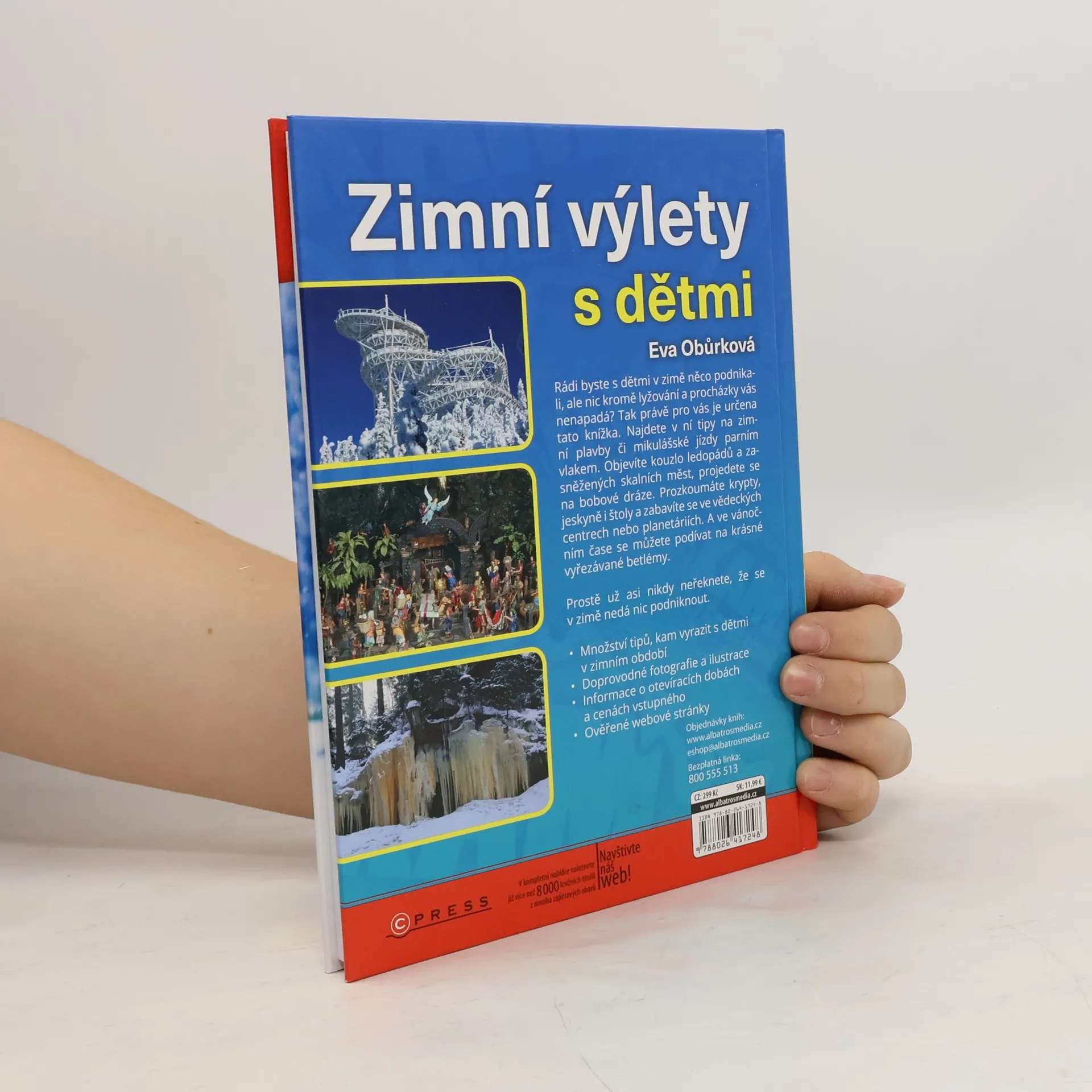 Rádi byste s dětmi v zimě něco podnikali, ale nic kromě lyžování a procházky vás nenapadá? Tak právě pro vás je určena tato knížka. Najdete v ní tipy na zimní plavby či mikulášské jízdy parním vlakem. Objevíte kouzlo ledopádů a zasněžených skalních měst, projedete se na bobové dráze. Prozkoumáte krypty, jeskyně i štoly a zabavíte se ve vědeckých centrech nebo planetáriích. A ve vánočním čase se můžete podívat na krásné vyřezávané betlémy.