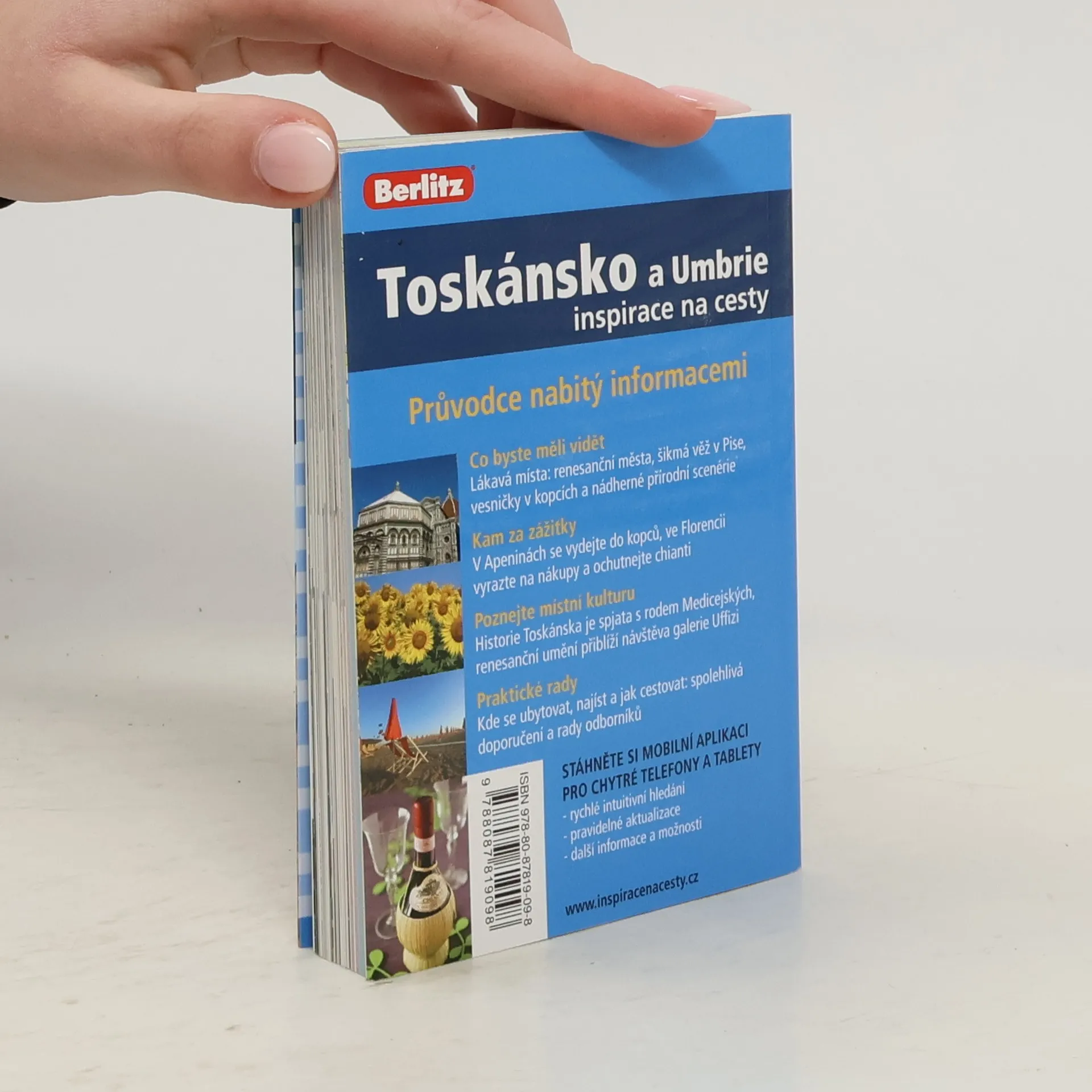 Cypřiše, olivovníky, vinice a vrcholky kopců poseté domky, půda zářící jantarovou žlutí: to vše tvoří pozadí renesančních maleb, které můžete spatřit v galeriích celého světa. Tytéž scenérie uvidíte na vlastní oči, vydáte-li se do Toskánska a Umbrie. Praktický průvodce vás provede po řadě zajímavých míst, která jsou spjata s historií, a nabídne vám přehled těch nejkrásnějších zákoutí. Ke snažší orientaci vám poslouží mapka, k základnímu dorozumění zase stručný slovníček nejčastějších frází. - Přehled turistických zajímavostí: renesanční města, šikmá věž v Pise, vesničky v kopcích. - Tipy na výlety a volnočasové aktivity: výšlapy do Apenin, nákupy ve Florencii, ochutnávka chianti. - Seznámení s místní kulturou a historií: odkaz rodu Medicejských, vrcholná díla renesance v galerii Uffizi. - Praktické rady: kde se ubytovat, najíst a jak cestovat.